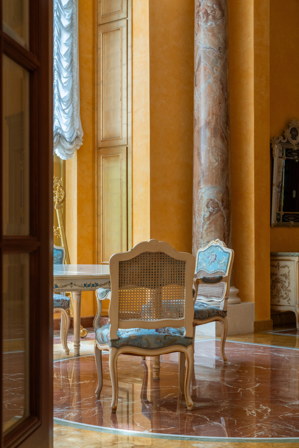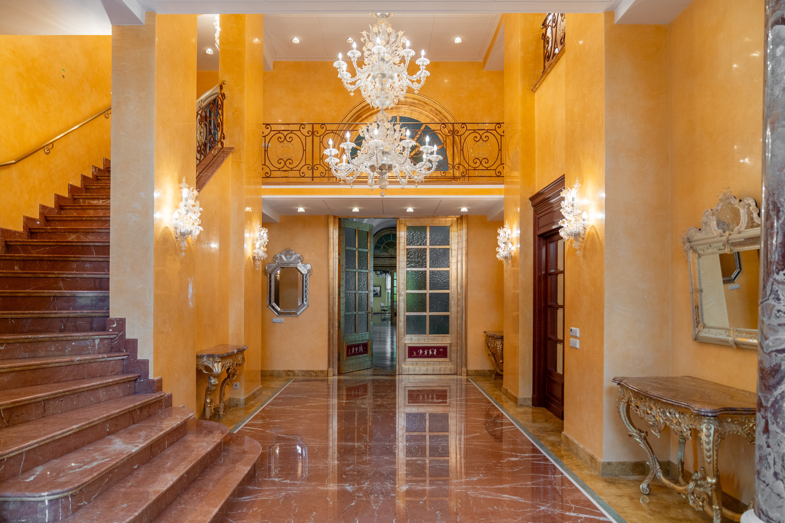 The property is distinguished by the highest standard of finishing. The floors and staircase are made of marble, wooden hand-carved details give the interiors a unique character, and crystal chandeliers illuminate the rooms with a subtle glow. Gilded stucco, exclusive sanitary fittings and an intelligent home management system including lighting, sound system and infrared monitoring make every element of this property work harmoniously together to offer comfort at the highest level.