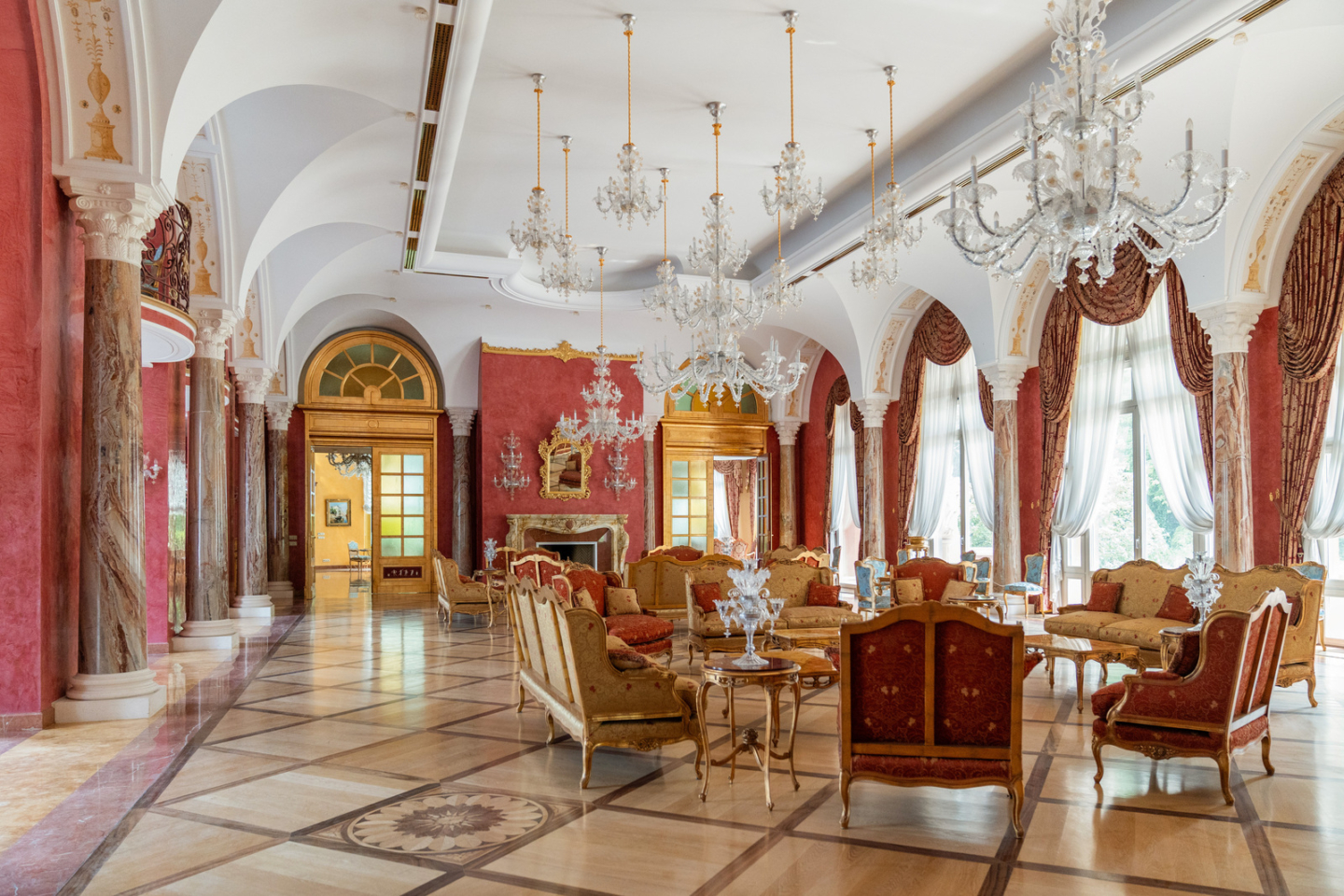 This monumental residence consisting of several houses, with a total area of all over 4,302 m2 and a usable area exceeding 3,428 m2, is located on a vast 8.8 hectare plot. The classic facade of the building, decorated with colonnade and rich architectural details, refers to the palace style, emphasizing the prestige of this property. High ceilings, huge glazing and carefully designed interiors create a space filled with light and luxury.