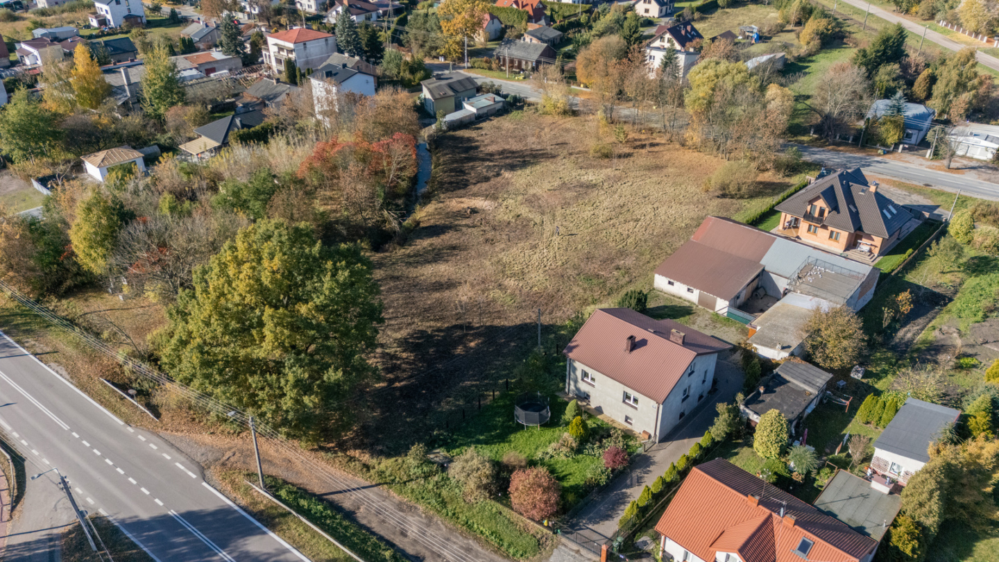 The offer includes building plot no. 194 with an area of 1,411 m², located in Radzymin (Radzymin municipality, Wolomin county), at Kardynała Stefan Wyszyńskiego Street. The plot of irregular shape (similar to a trapezoid) borders naturally with the Beniaminówka river, which adds charm and separation from the neighboring areas. The surrounding area is low-rise single-family housing, providing peace and privacy, with easy access to city amenities: stores, schools and the center of Radzymin at a distance of 1.5 km (5 minutes by car). Communication at the highest level - SKM station 1 km (15 minutes on foot), access to Warsaw by car in 30-40 minutes or by train in 40 minutes, and the S-8 route just 3 km away. The land is flat, with a tree cover of small self-sown trees, ideal for clearing and quick start of the investment.