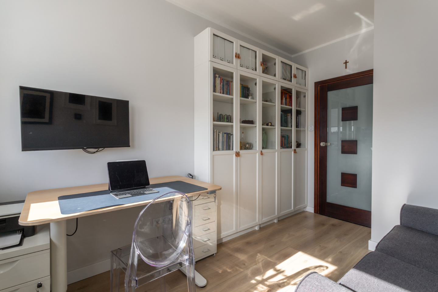 The layout of the rooms is conducive to both leisure and remote work or daily functioning. An additional advantage is the practical, hidden dressing room and the location on the top floor, providing tranquility and beautiful light throughout the day.