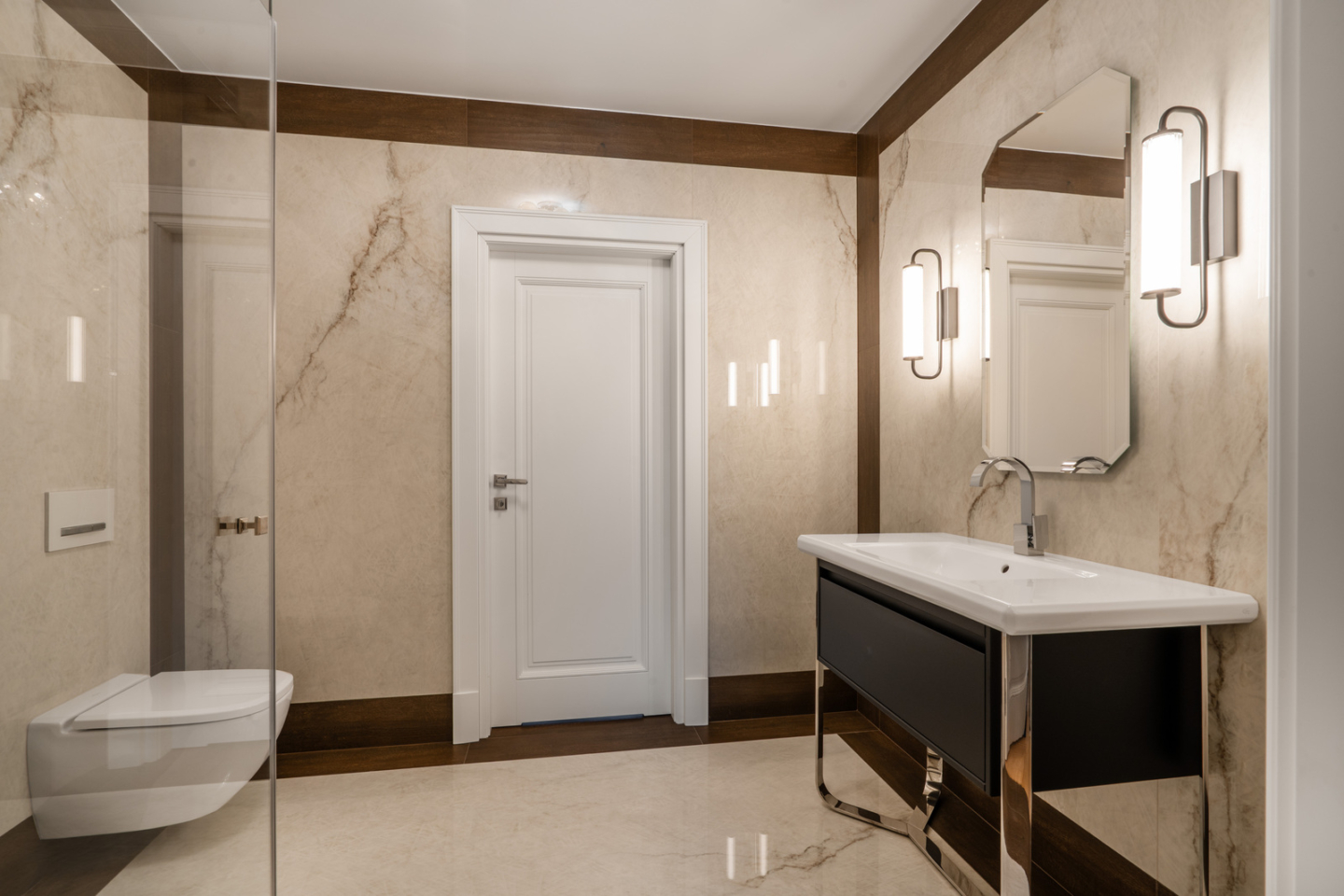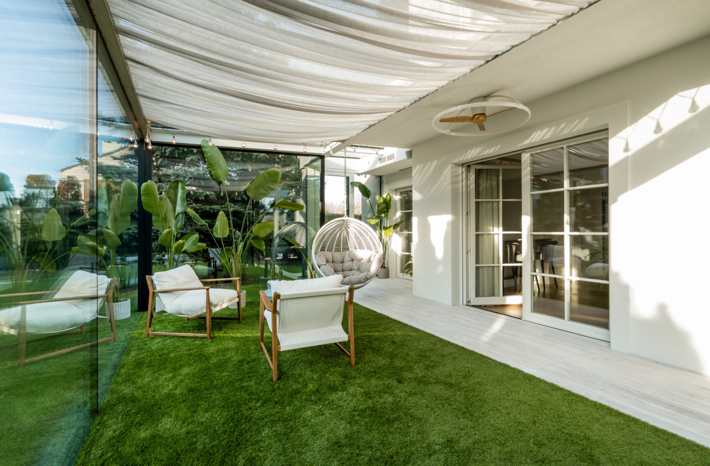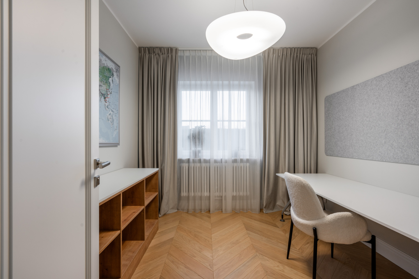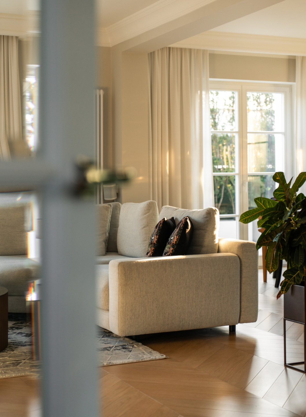 The 325 m² house impresses with its functional layout and rich furnishings. The first floor is an open living area with a living room, dining room and kitchen with an island and a glazed orangery full of greenery (30 m²). On the first floor are bedrooms with private bathrooms and dressing rooms, including a master suite with a Villeroy&Boch freestanding bathtub and controllable blackout curtains. The interiors are finished with natural French herringbone wood, quartz and unique Dubinsky woodwork. The house is equipped with air conditioning in every room, SONOS sound system, water filtration and integrated Apple Home control. The whole is complemented by a private gym and a wine cellar.