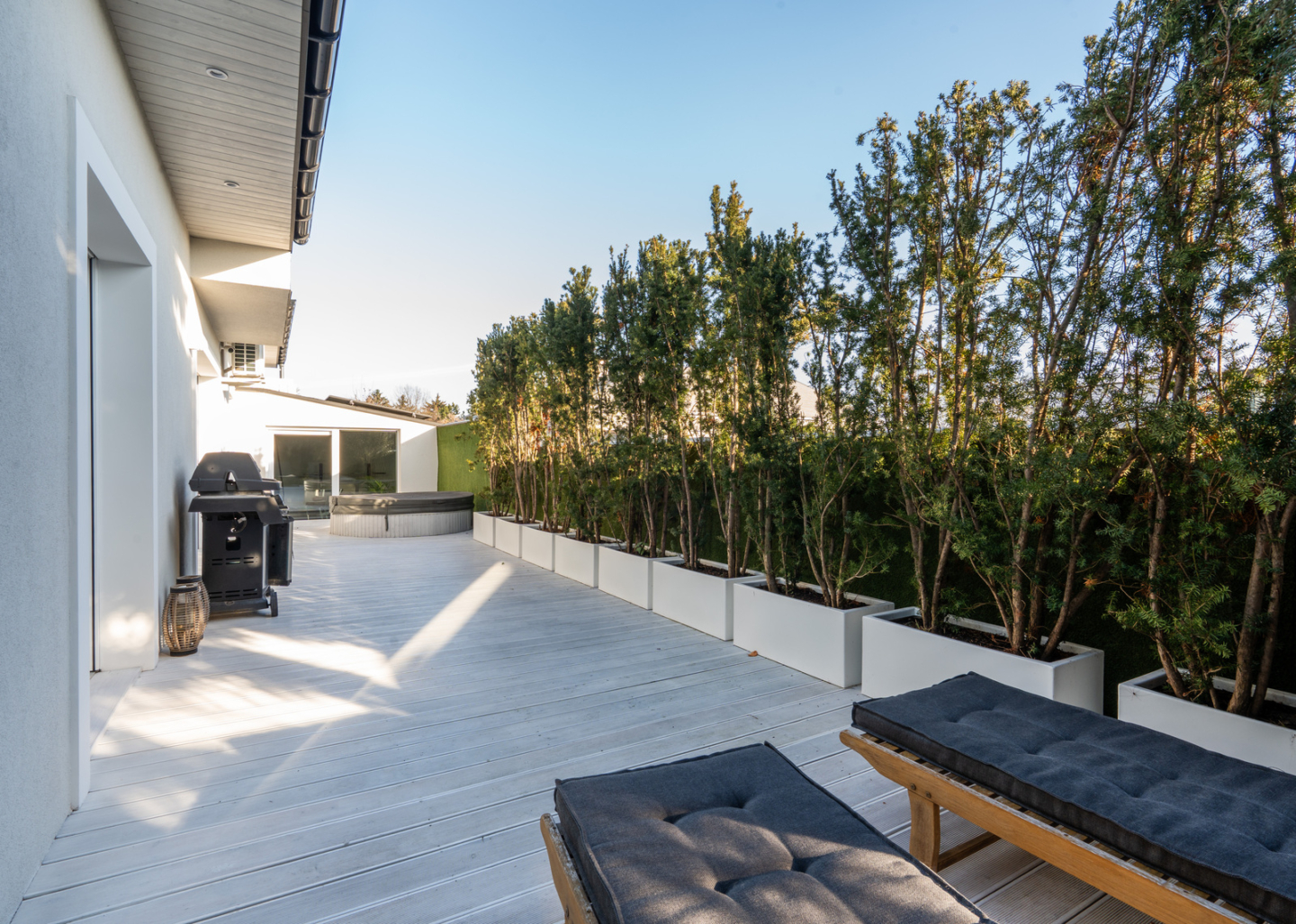 Modern house that underwent a major renovation in 2023 with a high architectural standard, with a garden, a terrace with a Jacuzzi and a garage with a charger for electric cars. The building is equipped with a recuperation system, 10 kW photovoltaics and full smart home control.