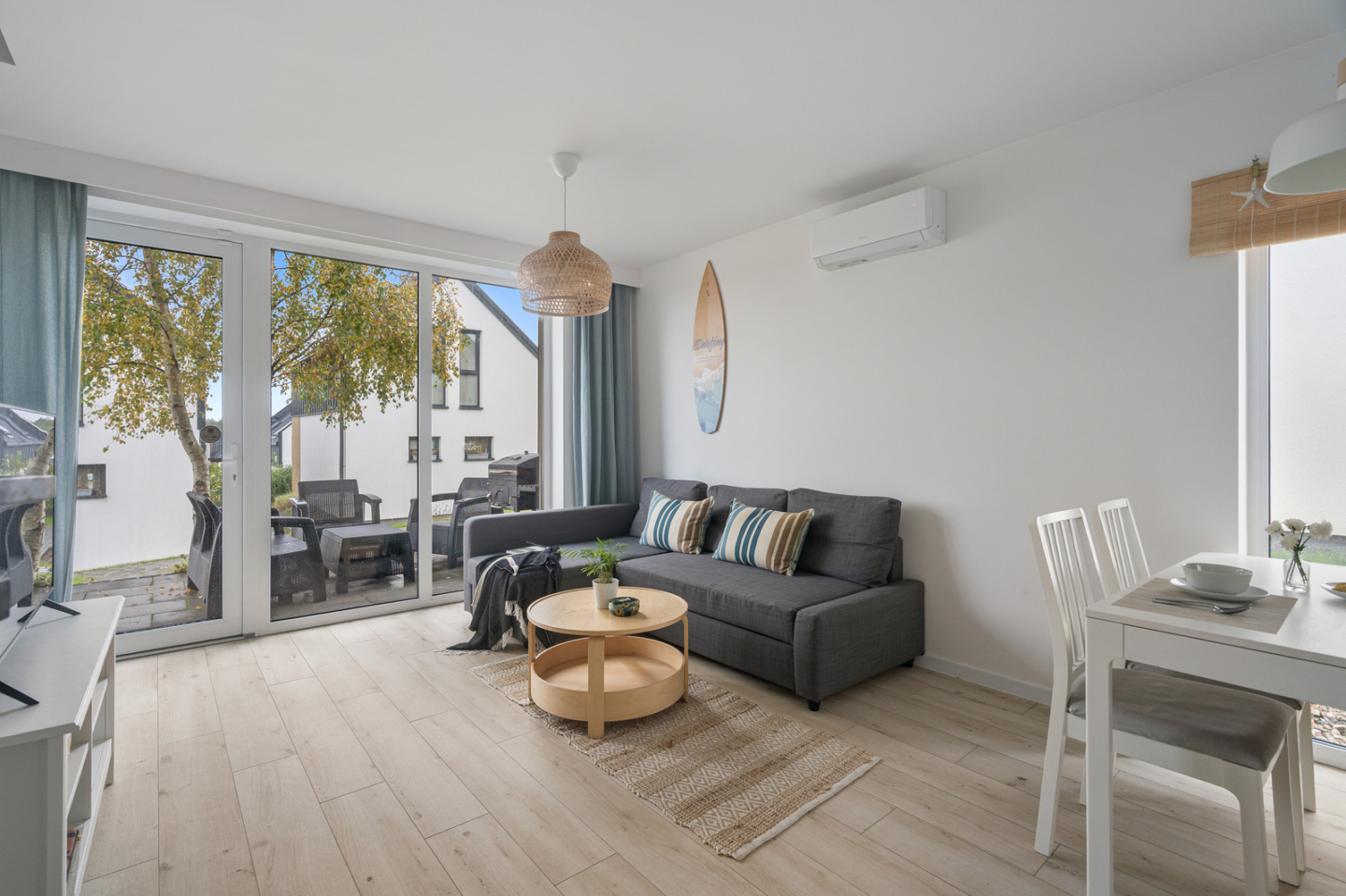 The mini estate is located on the edge of Władysławowo, close to the entrance to the Hel Peninsula, in a quiet and peaceful area.