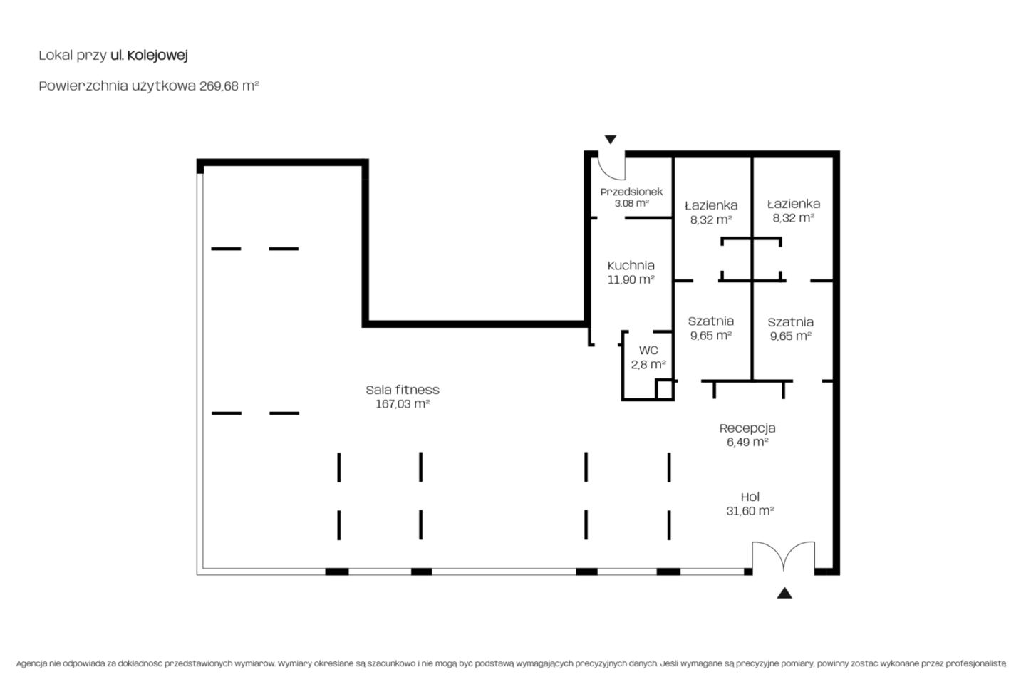 The apartment of nearly 270 m² was created by combining two units, creating one open space with large HS glazing. Currently furnished as an exclusive gym with full equipment - workout equipment worth about 400,000 zlotys (payable additionally only 120,000 zlotys), office furniture and sanitary facilities to a high standard. The corner location and exposure to the thoroughfare increase its visibility and commercial potential.