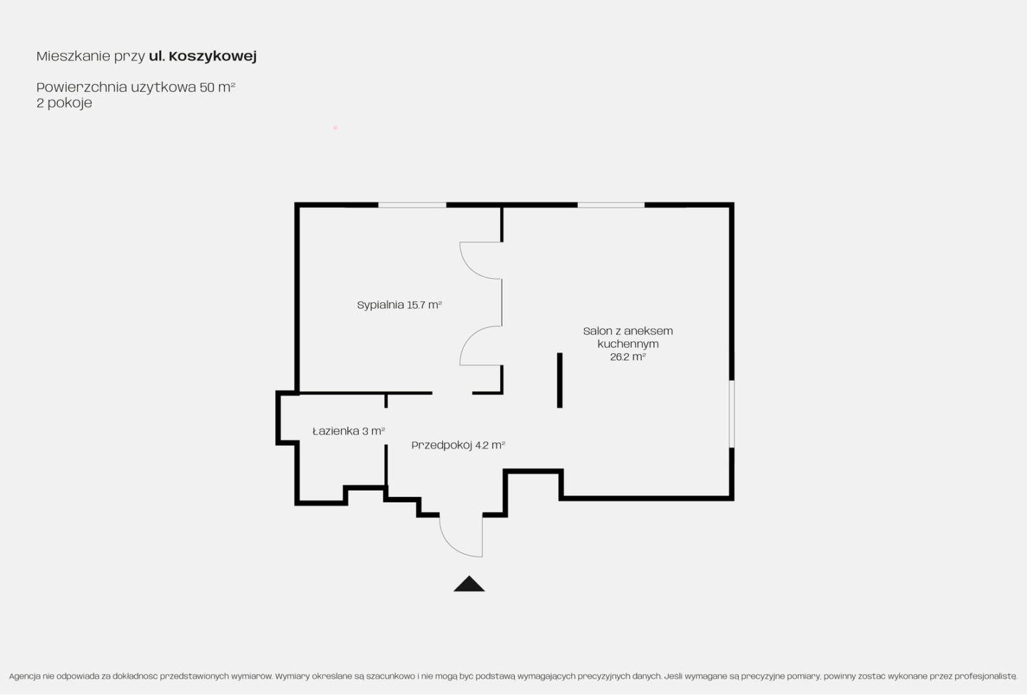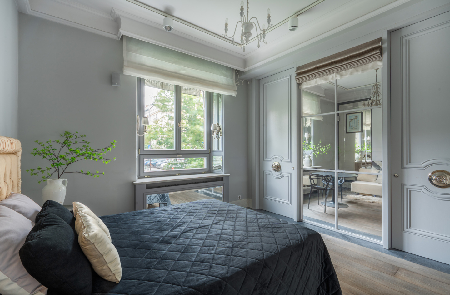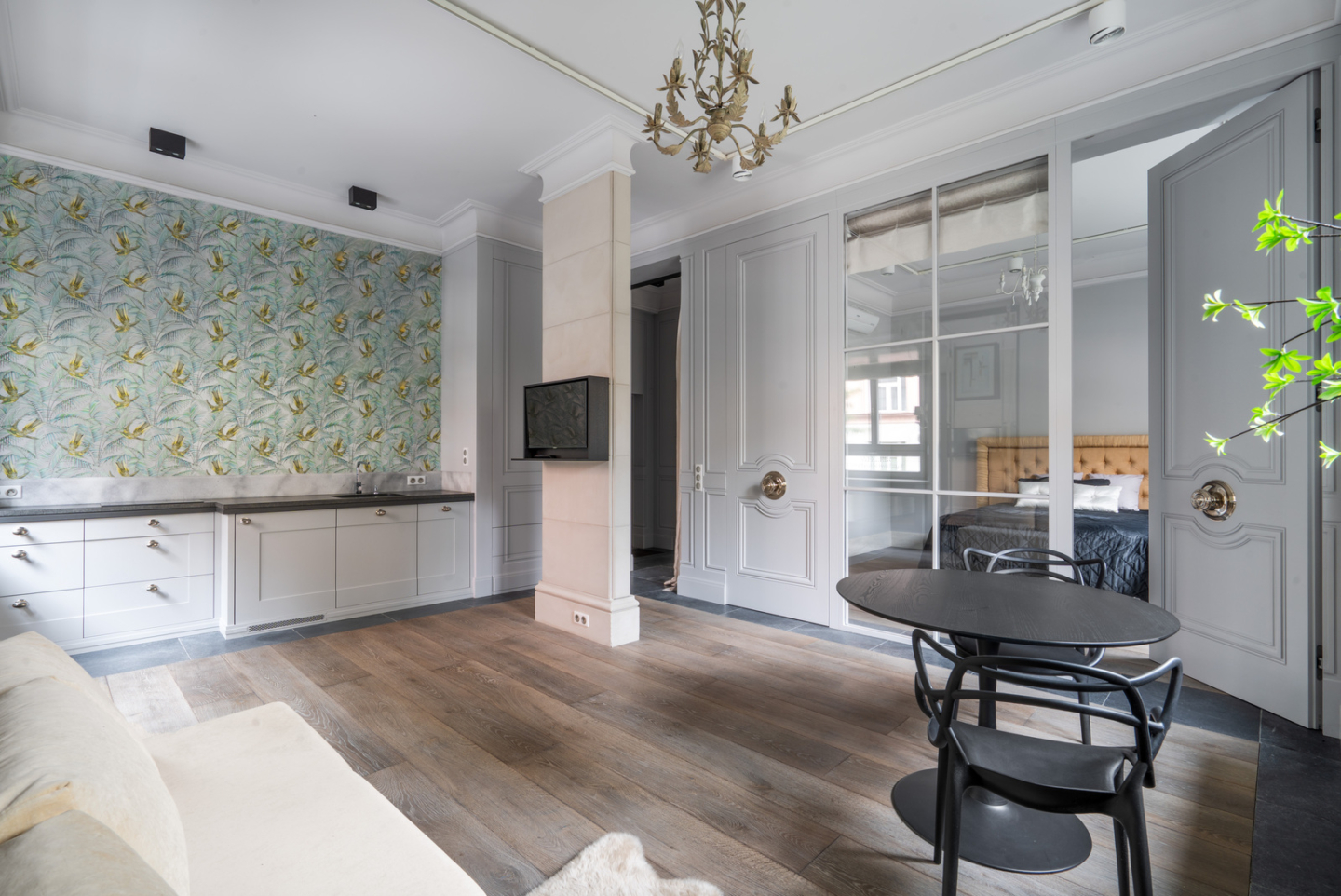 The 49,55 m² apartment consists of a living room with a kitchen, a bedroom and a bathroom with a toilet. It is quiet and very functional. The high ceilings of more than 3 meters high and large windows add space and light, while the classic layout of the rooms allows for many arrangement possibilities - from a comfortable apartment for a couple to a work space.