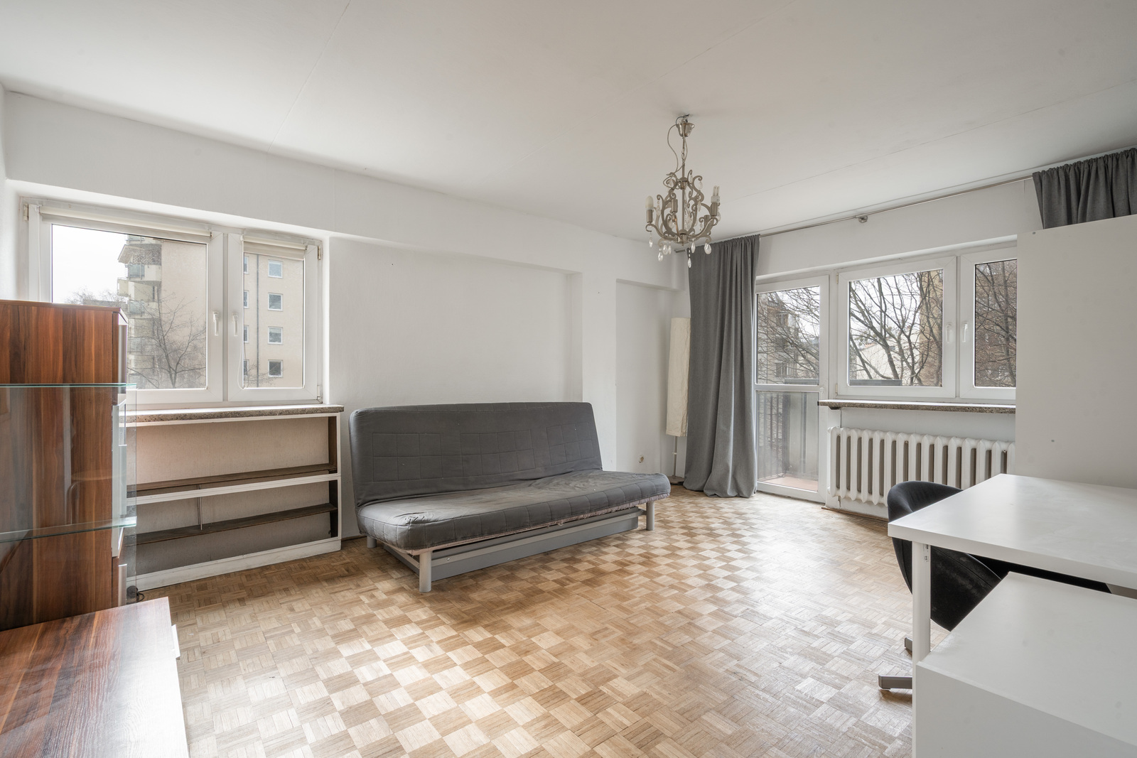 A corner apartment, perfectly illuminated with natural light, which provides a comfortable and friendly interior atmosphere. The functional layout of the rooms offers many arrangement possibilities, both for families and those looking for an apartment for rent.
