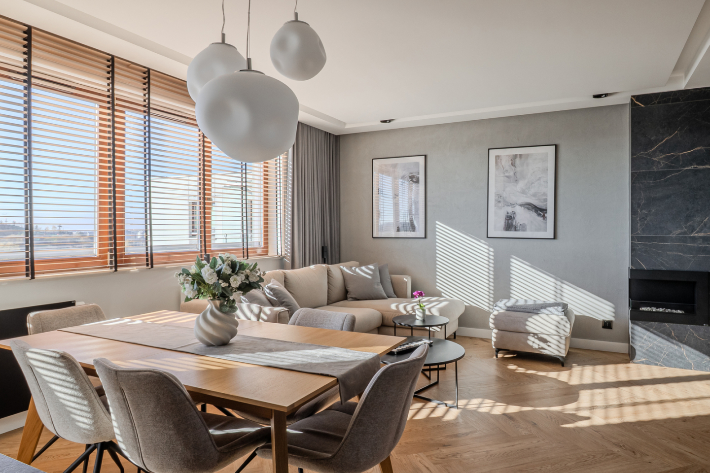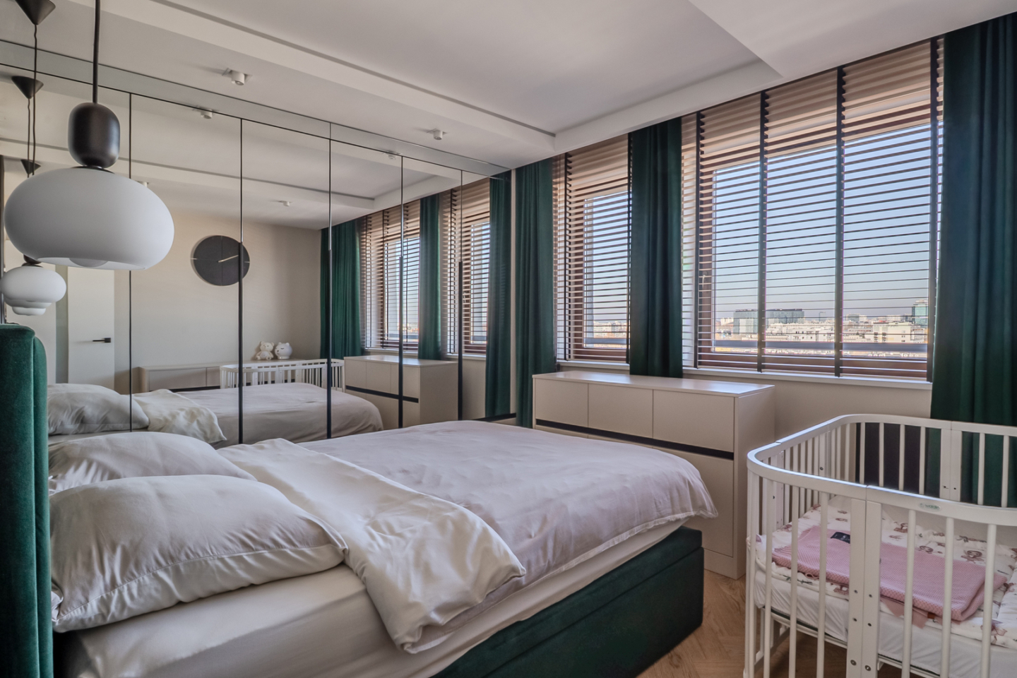 This is a unique space, where modern design meets functionality and a spectacular view - on one side to the panorama of the center of Warsaw, on the other side to the greenery of Szczesliwice Park.