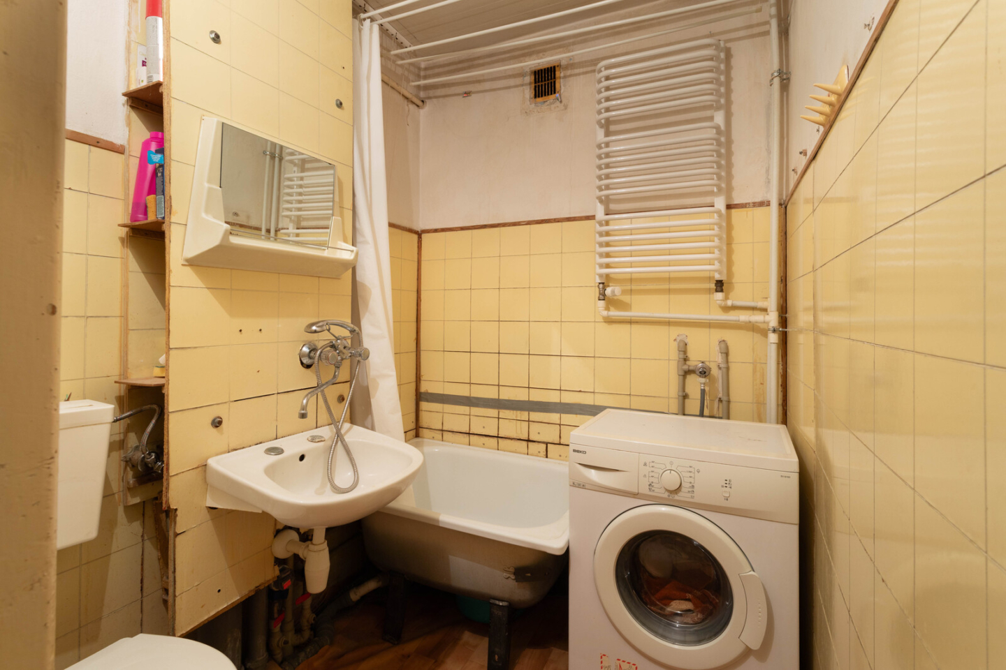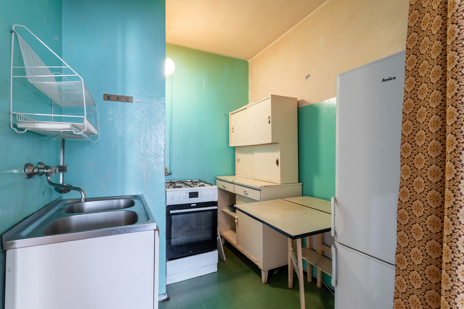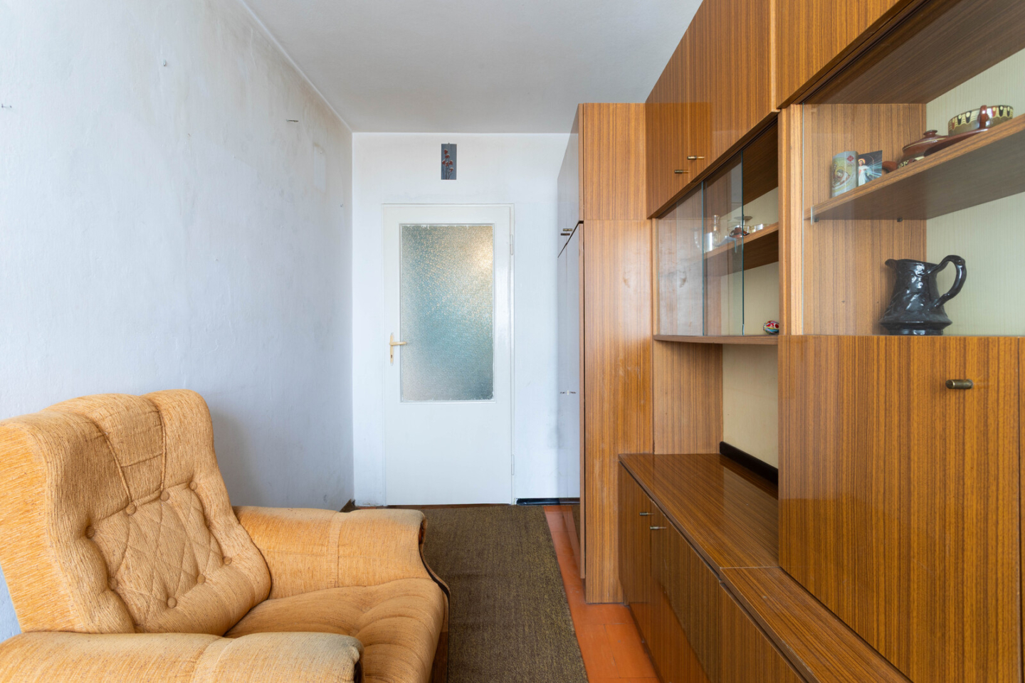 A nine-story block of flats from 1965 , characterized by classic, functional architecture. The apartment is located on the 6th floor, and the building has an elevator. This two-room (14 sqm and 9 sqm) apartment of 37 sqm has a clear and ergonomic layout, ideal for quick renovation.
