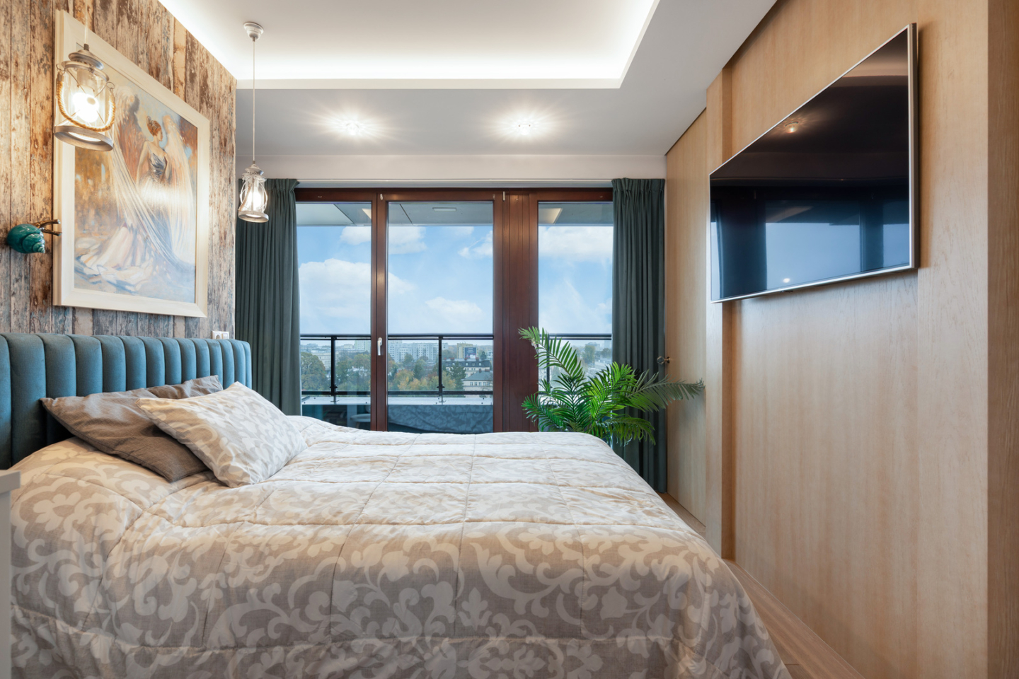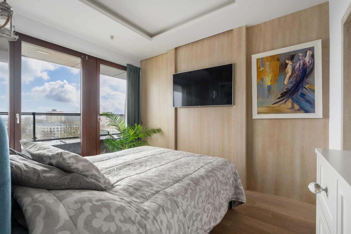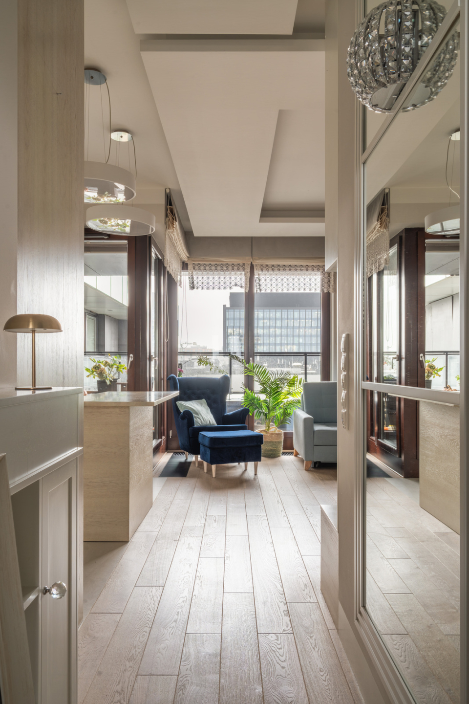 A suite designed with comfort in mind. Two rooms with functional layout, finished to a high standard for living. Oak flooring adds warmth to the interior, while large panoramic windows add lightness and spaciousness. The living room connects to the dining area, becoming a great space for relaxing or working. The bathroom finished with classic tiles, give the interior an elegant, timeless style, and the guest toilet is a real oasis.