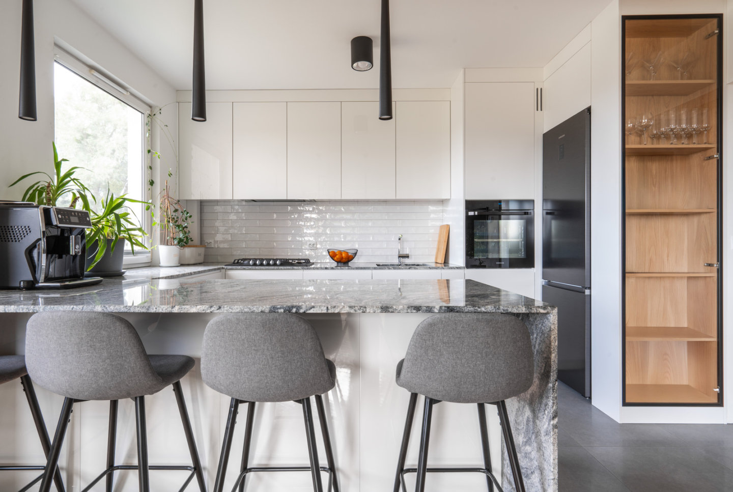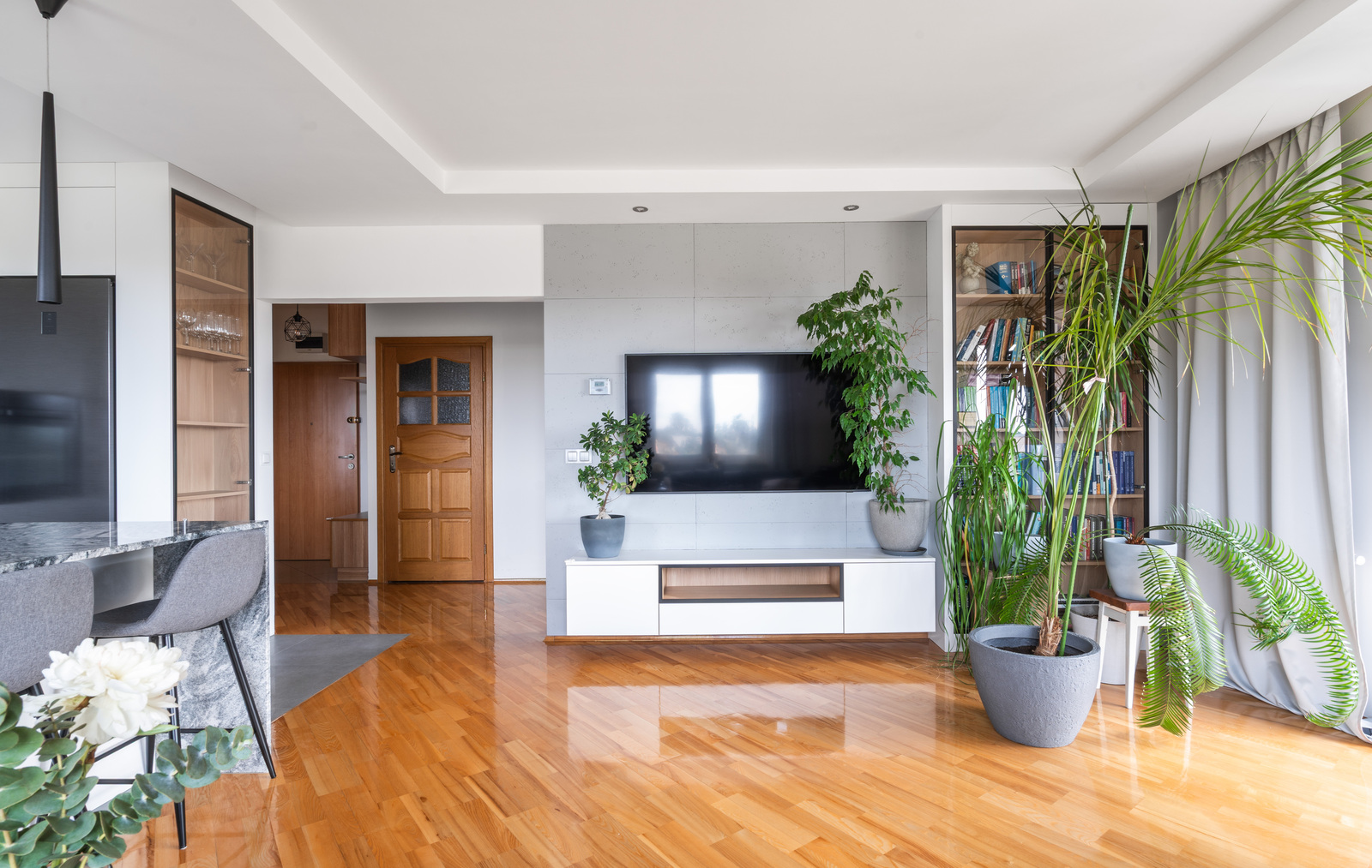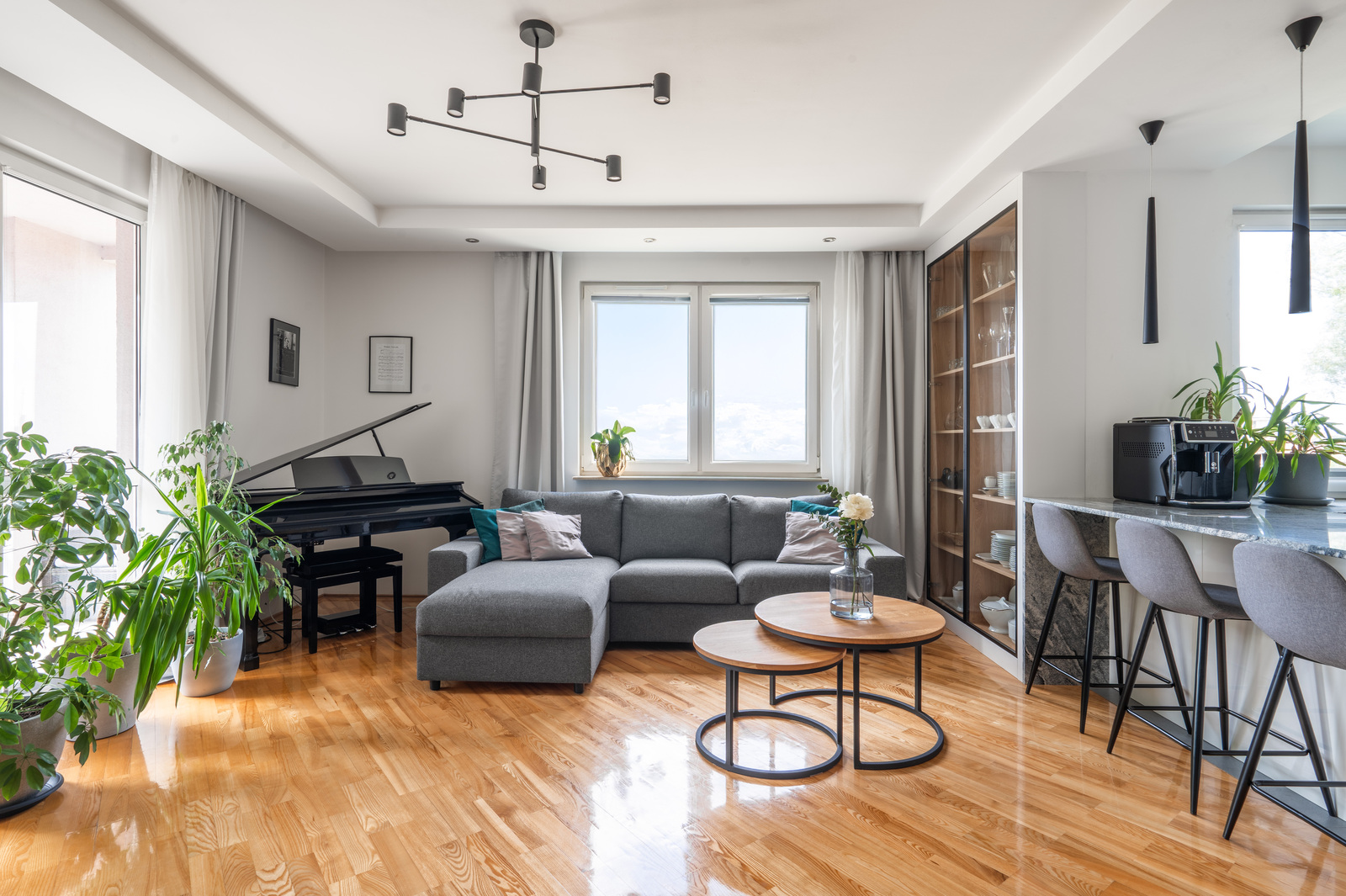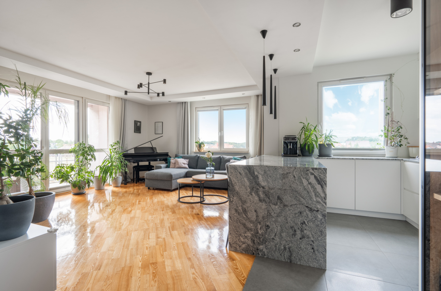 - a spacious living room with a large, open kitchen-about 35 sqm and an exit to over 10 sqm loggia-the heart of this apartment