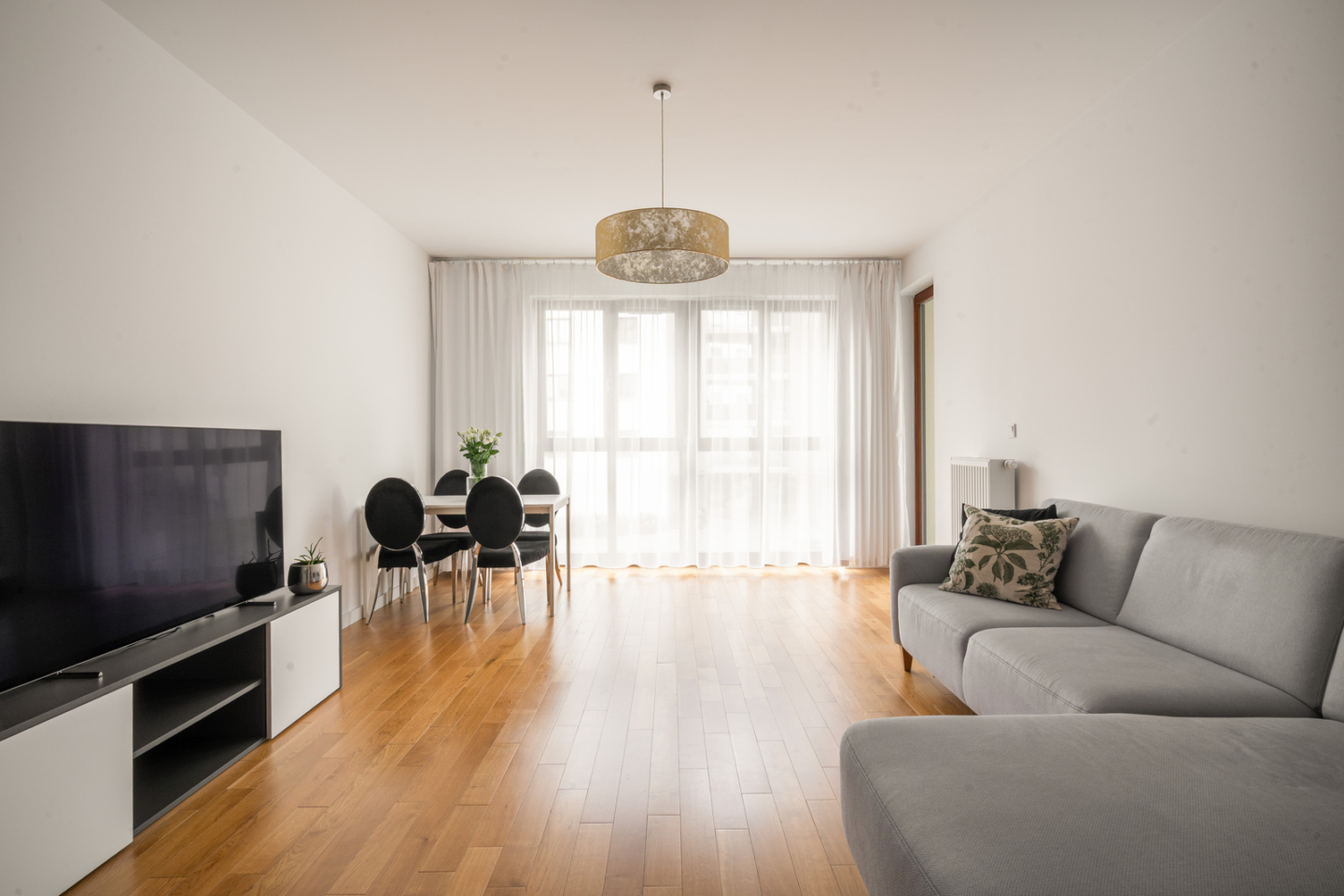 The spacious loggia, to which the exit leads from the bedroom and living room creates super conditions for relaxing with a cup of coffee in hand.
