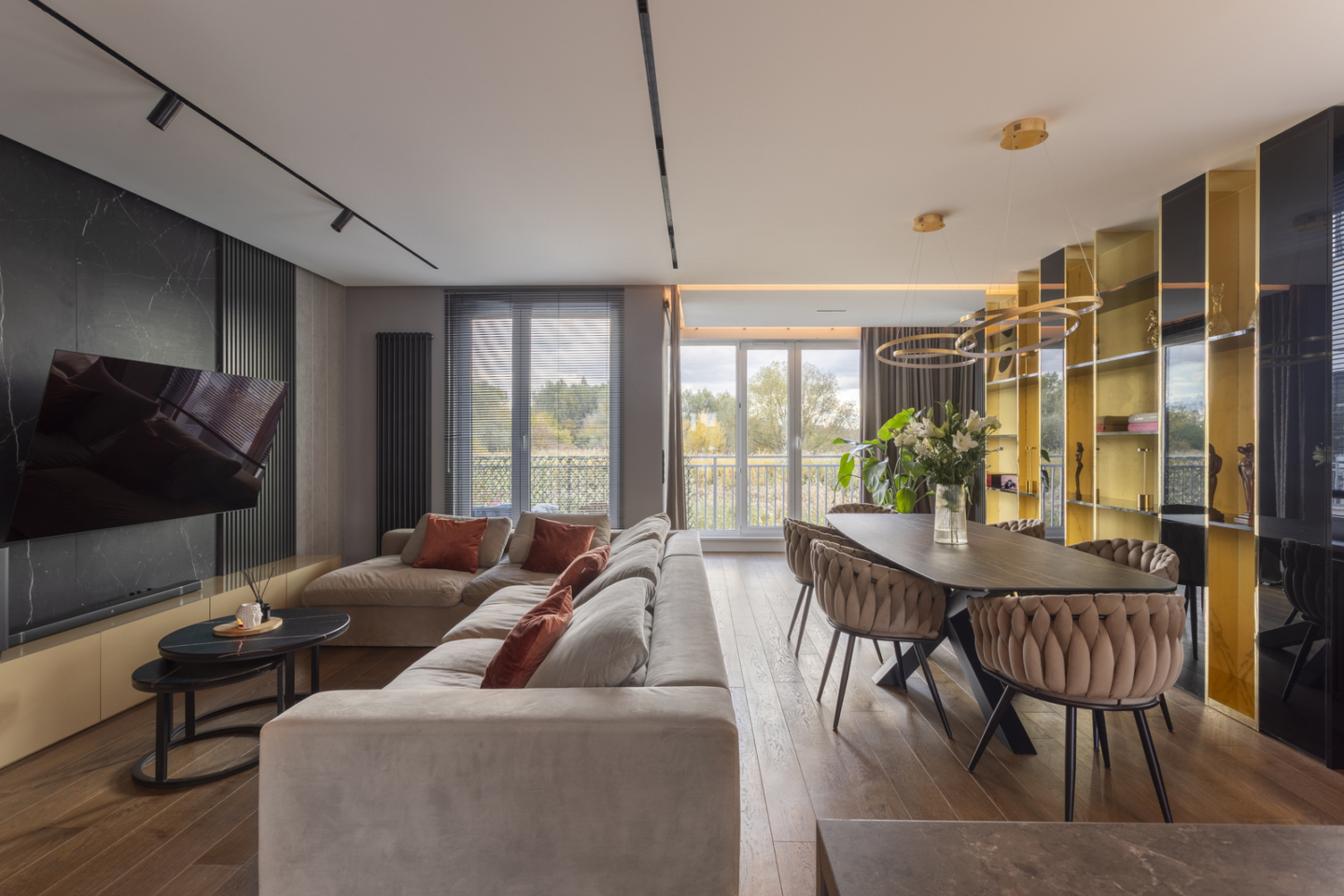 Liczba pokoi: salon z aneksem kuchennym + gabinet/pokój + sypialnia + garderoba