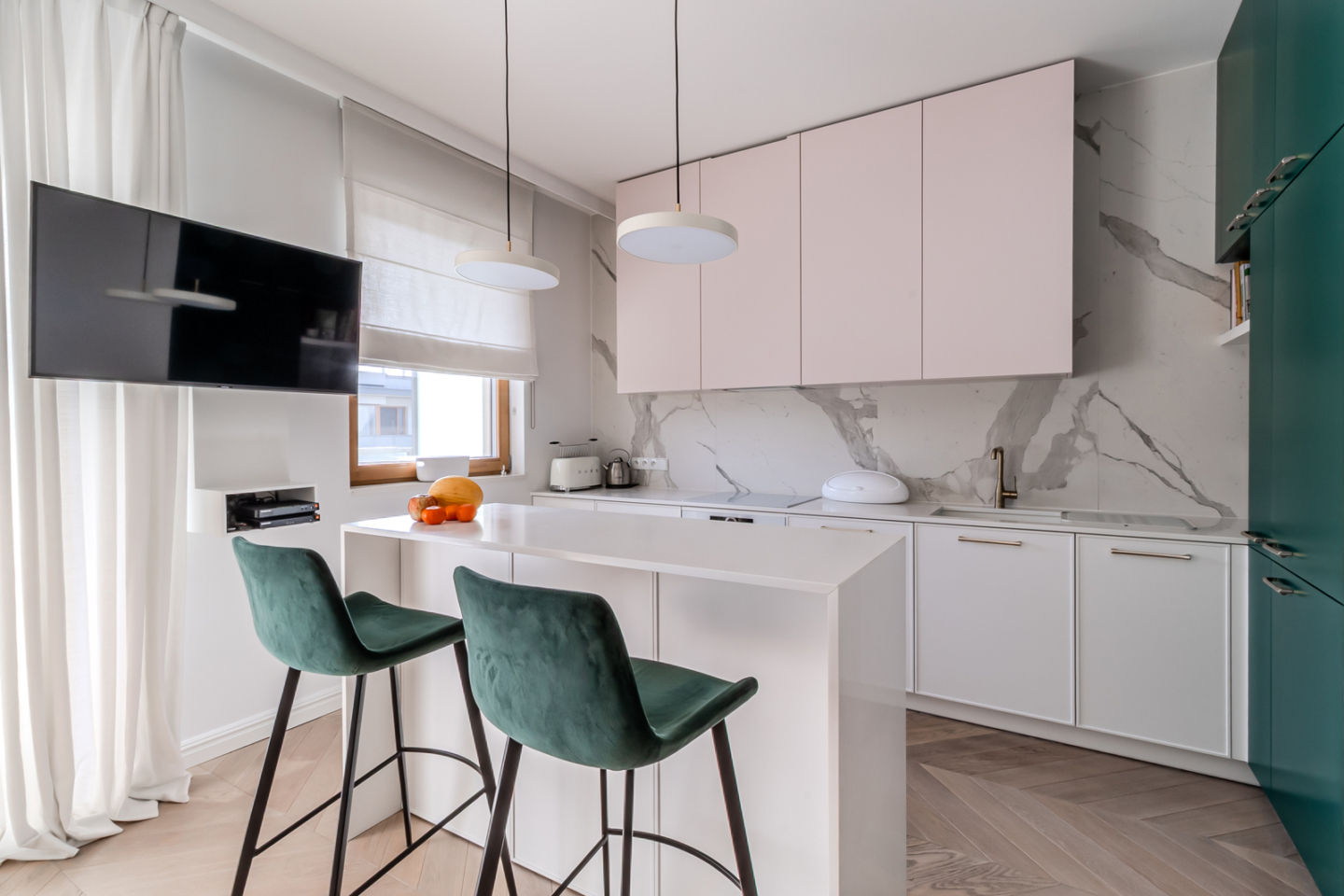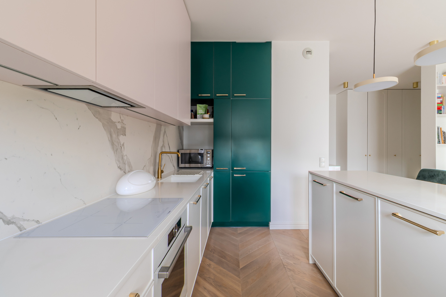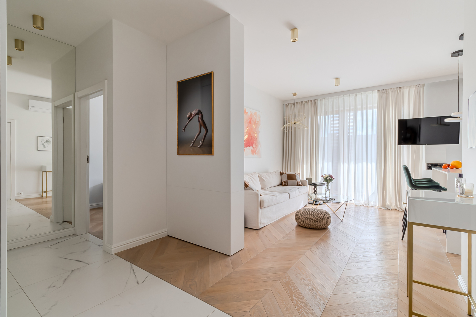 Mieszkanie zostało zaprojektowane pod okiem architekta, z dbałością o każdy detal. Wykończenie stoi na najwyższym poziomie — bez kompromisów, np.: