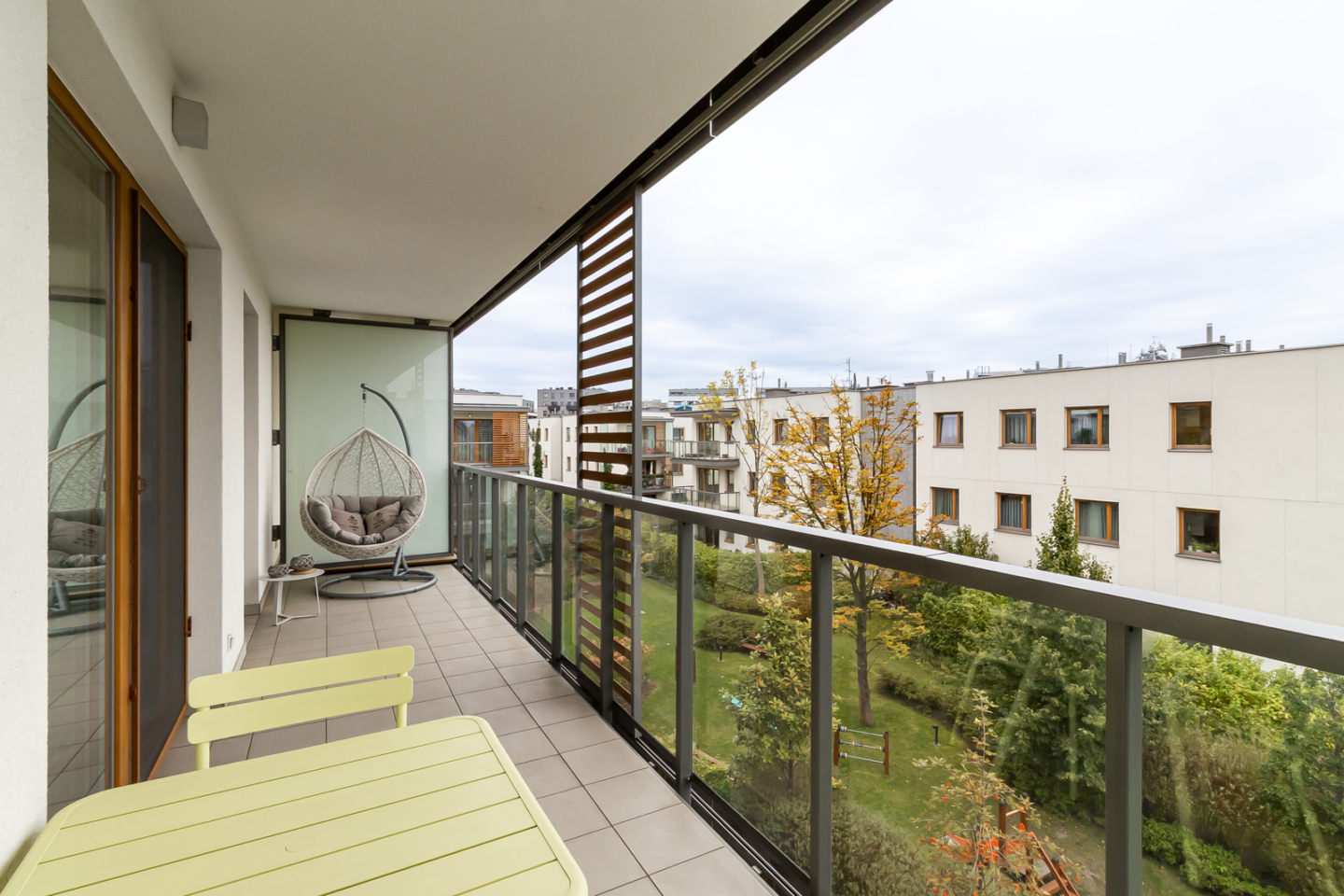 Duże przeszklenia i ukierunkowanie na południowy wschód zapewniają wyjątkowe nasłonecznienie. Z salonu i sypialni prowadzi wyjście na przestronny, 15-metrowy balkon, z którego rozpościera się widok na zielone patio. Kameralne, najwyższe piętro gwarantuje prywatność, ciszę i spokój. Dodatkowy komfort zapewnia regularnie serwisowana klimatyzacja w salonie. W mieszkaniu poszczególnymi urządzeniami sterować można poprzez aplikację Smart Home (Lutron). Niezależnie, do części oświetlenia istnieją dedykowane piloty.