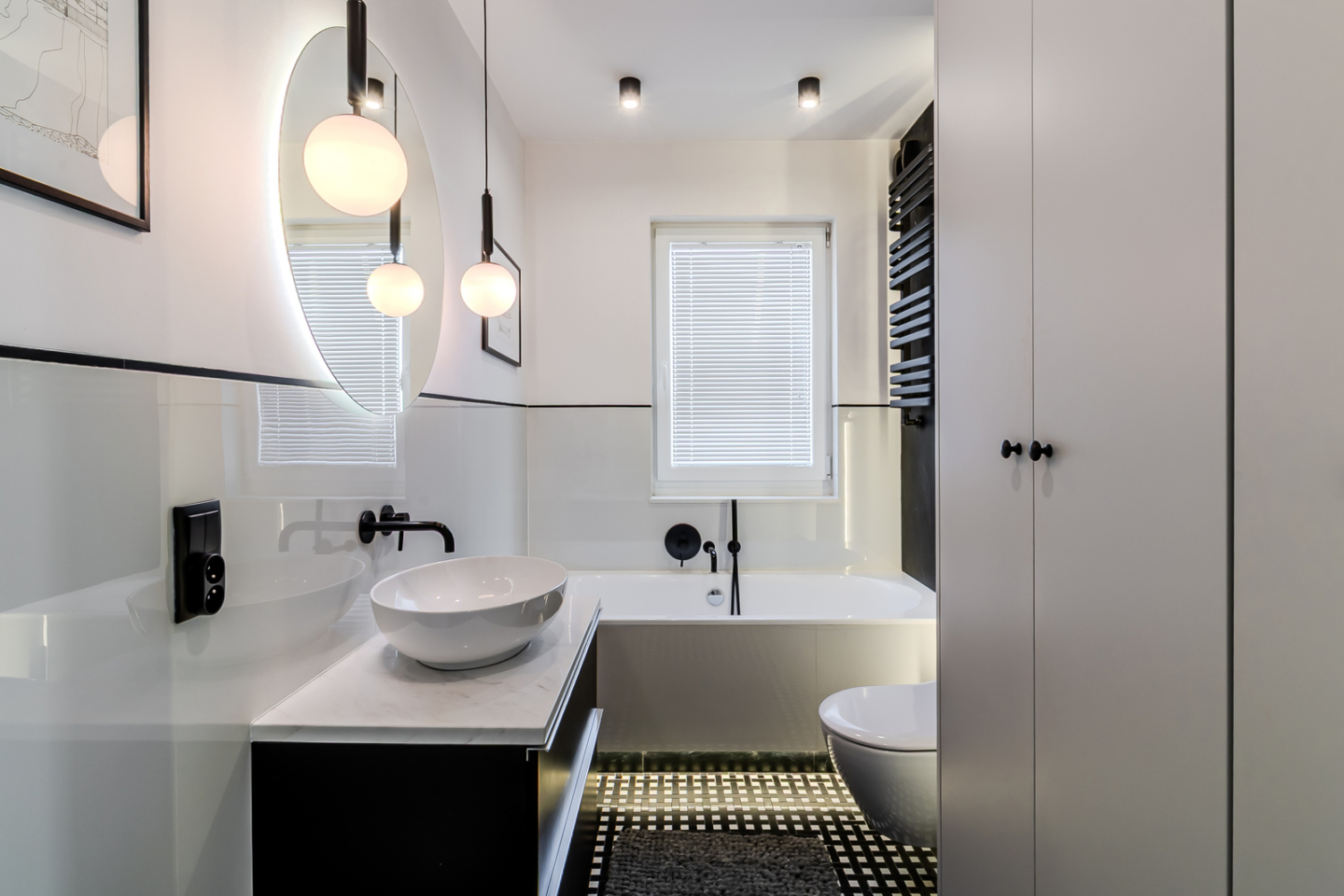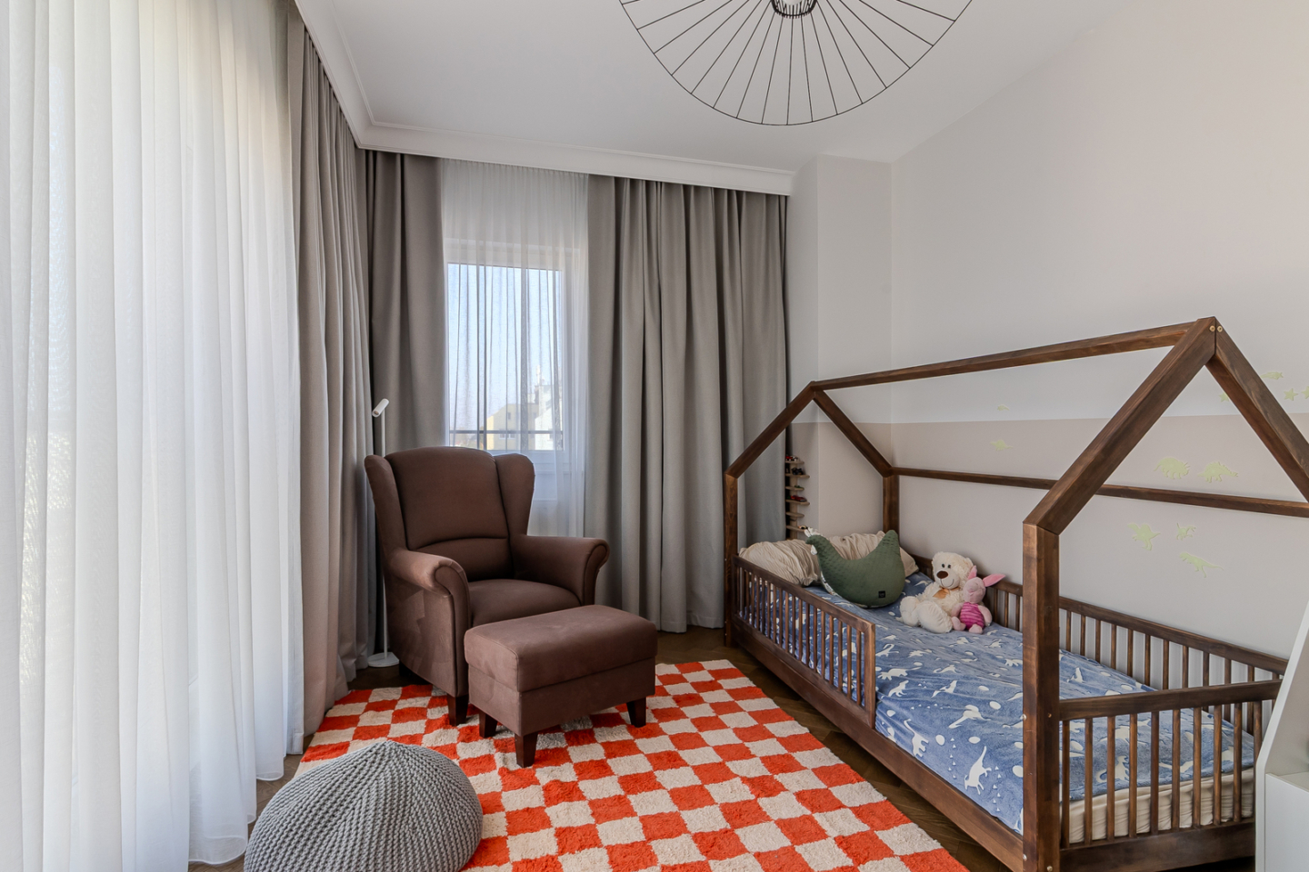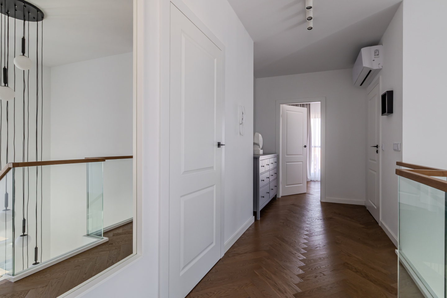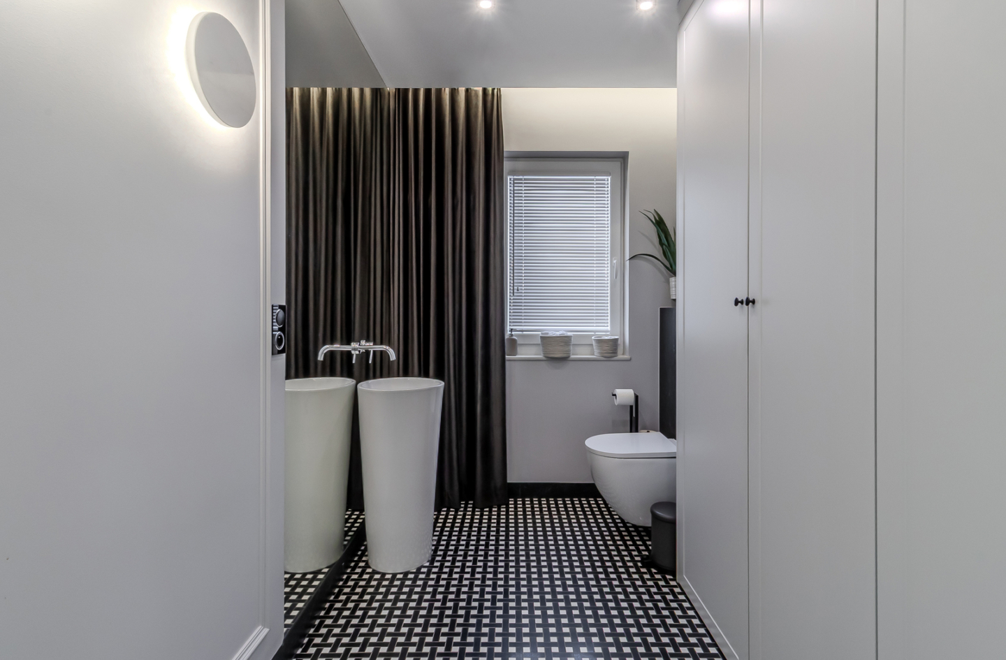 Meble w zabudowie wykonane według indywidualnego projektu, kamienne blaty kuchenne, sprzęt AGD, drzwi, elektrycznie przesuwane zasłony, klimatyzacja, ceramika, armatura – wszystkie elementy wyposażenia zostały starannie wyselekcjonowane spośród firm gwarantujących najwyższą jakość wykonania.