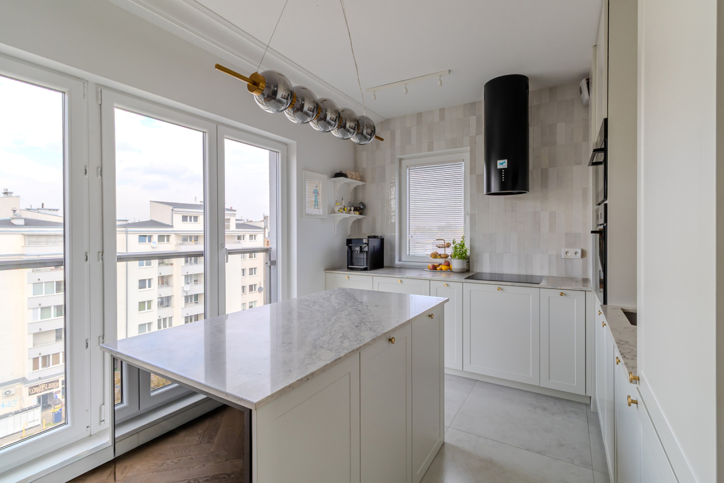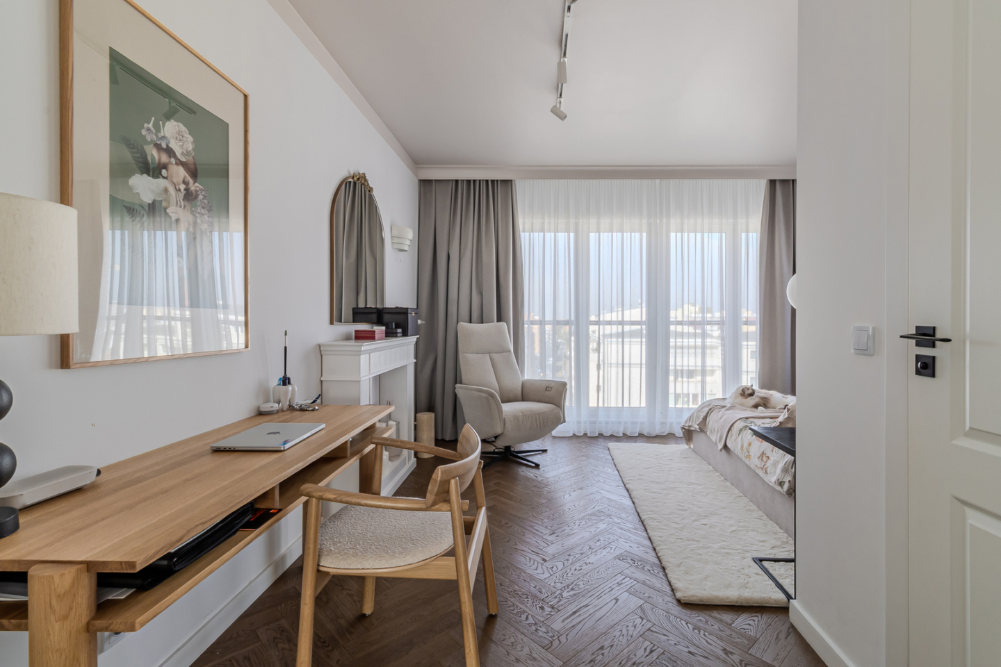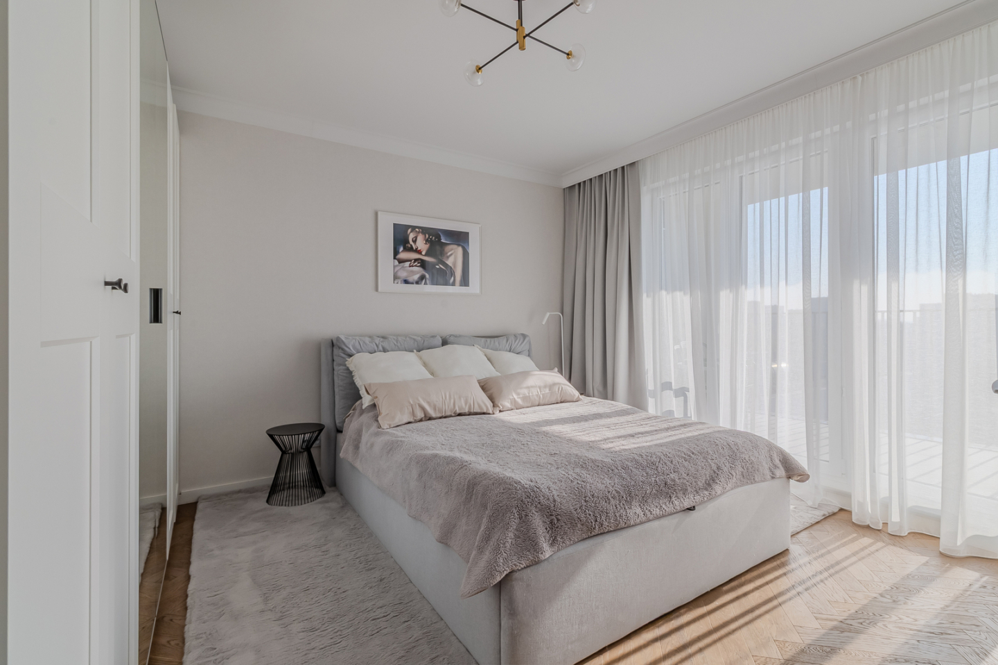 Duże okna sięgające od sufitu do podłogi oraz trzystronna ekspozycja zapewniają doskonałe doświetlenie o każdej porze dnia.