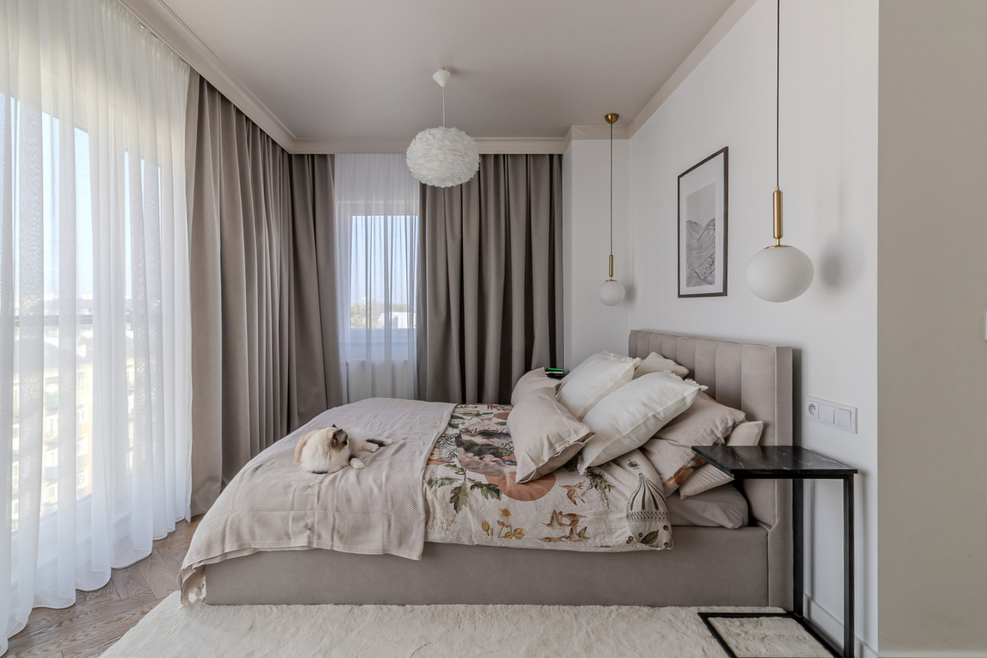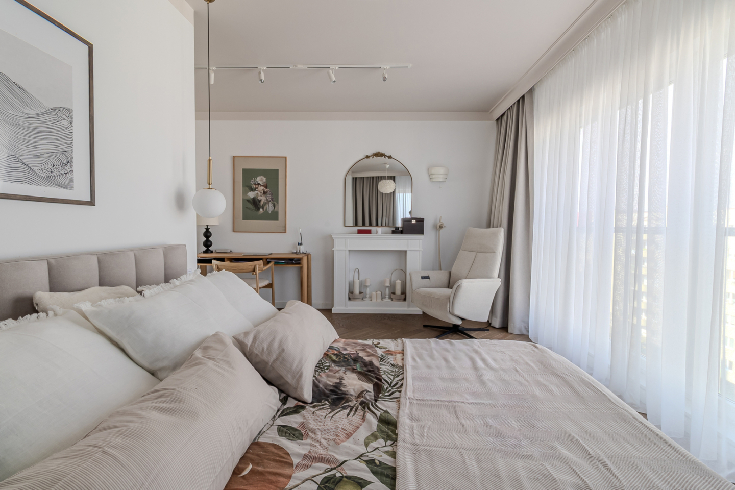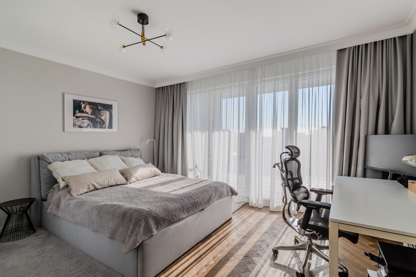 Duże okna sięgające od sufitu do podłogi oraz trzystronna ekspozycja zapewniają doskonałe doświetlenie o każdej porze dnia.