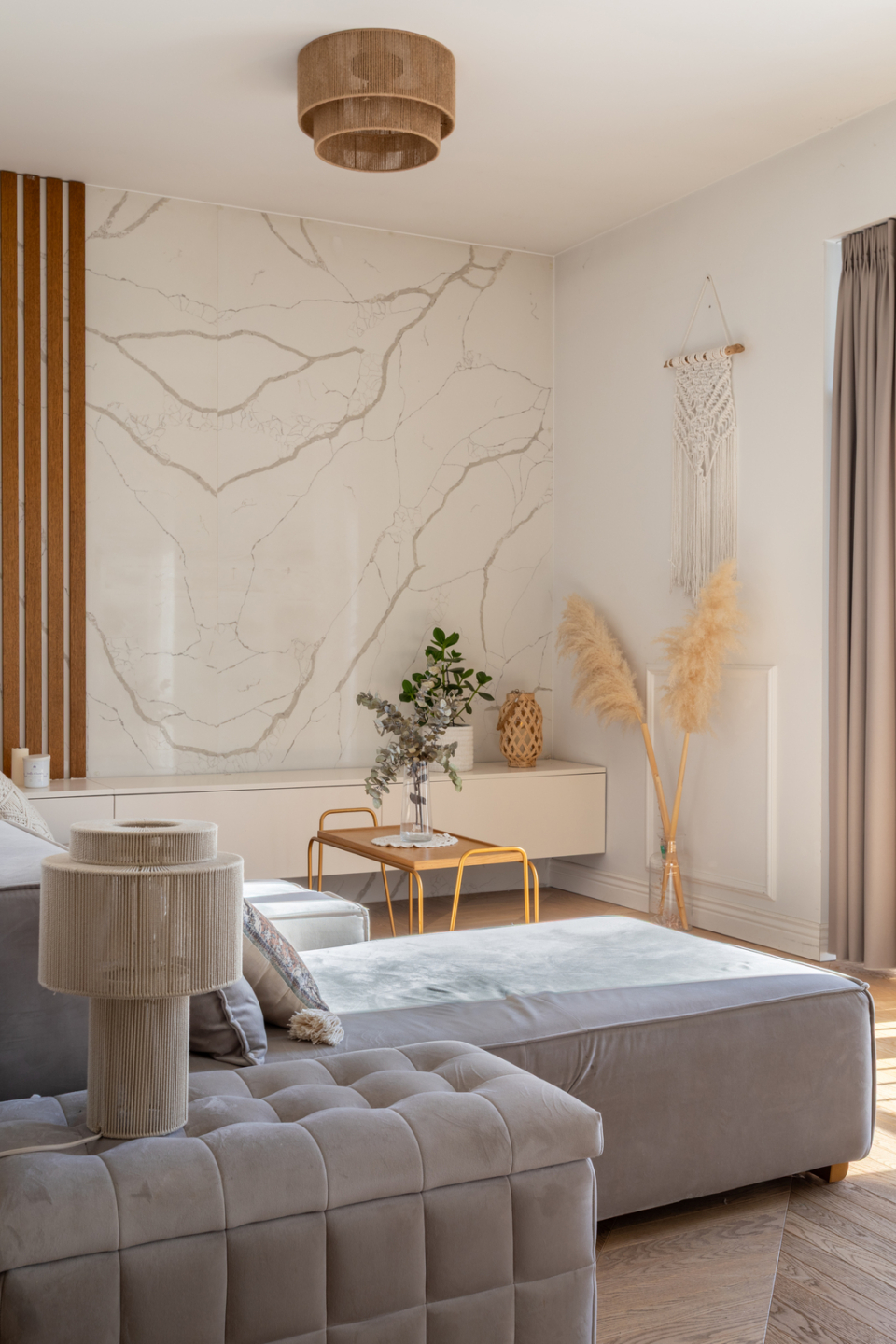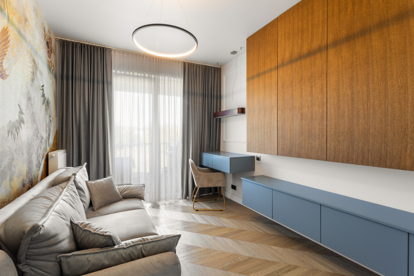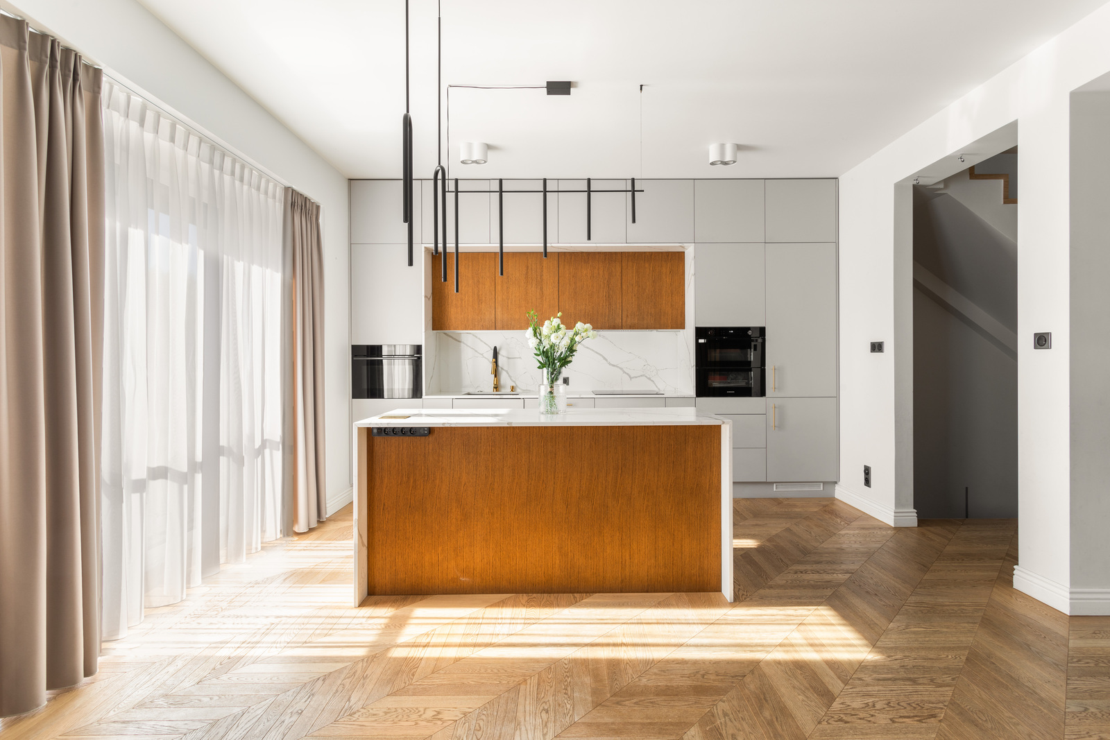 Wnętrza apartamentu zostały zaprojektowane w 2021r. we współpracy z profesjonalnym biurem architektonicznym. Wykończone są w wysokim standardzie z dbałością o każdy detal.