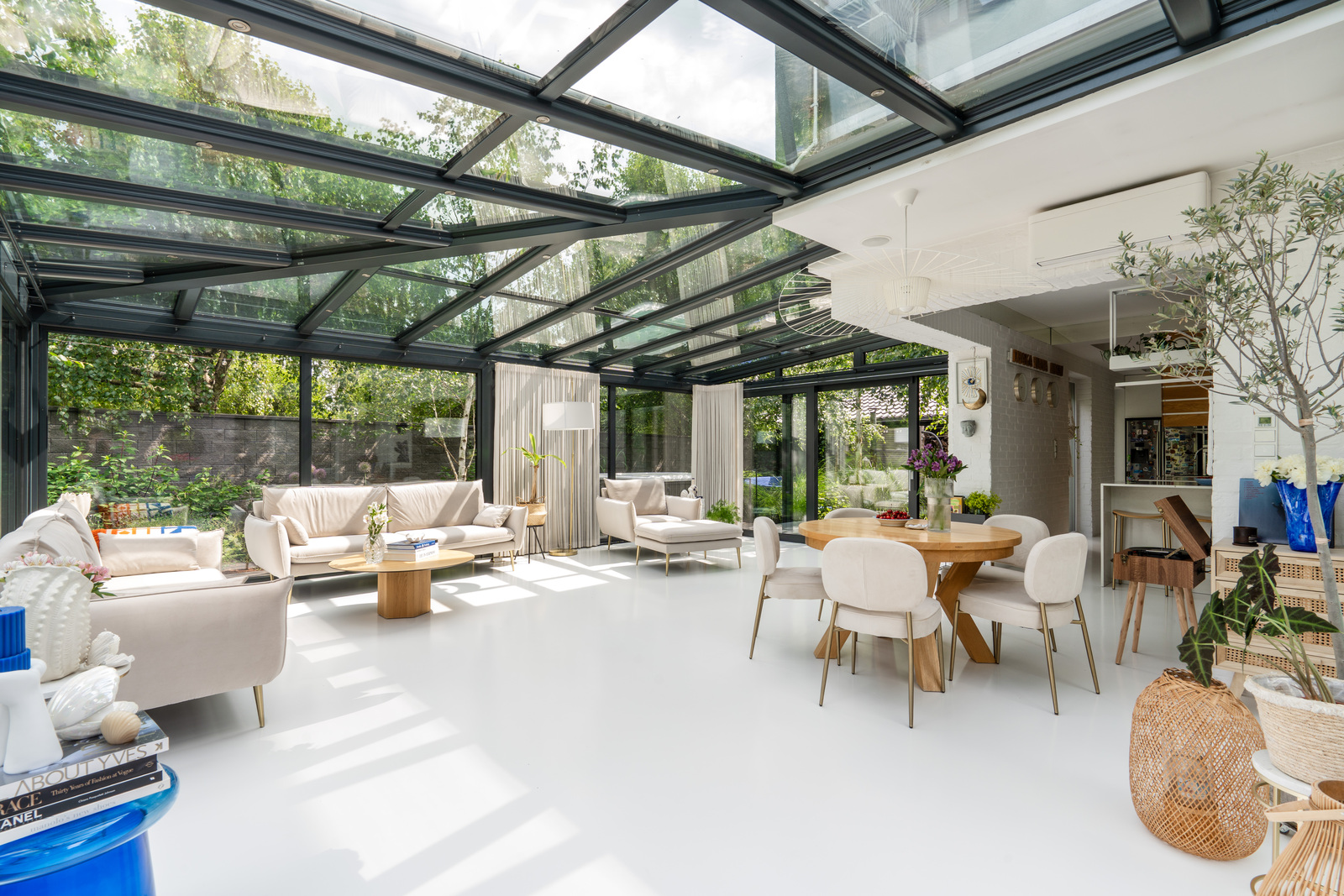 Jasny, przestronny i jedyny w swoim rodzaju dom w zabudowie bliźniaczej z świetnie zagospodarowana działką, zewnętrznym całorocznym jacuzzi i niesamowitym ogrodem zimowym, zaaranżowanym jako salon – z wygodną strefą wypoczynkową i jadalnią. Nieruchomość dostępna jest wyłącznie w naszej agencji w ramach umowy na wyłączność.