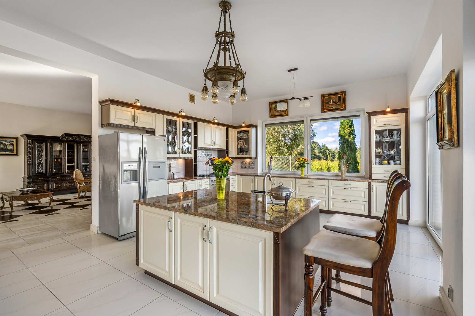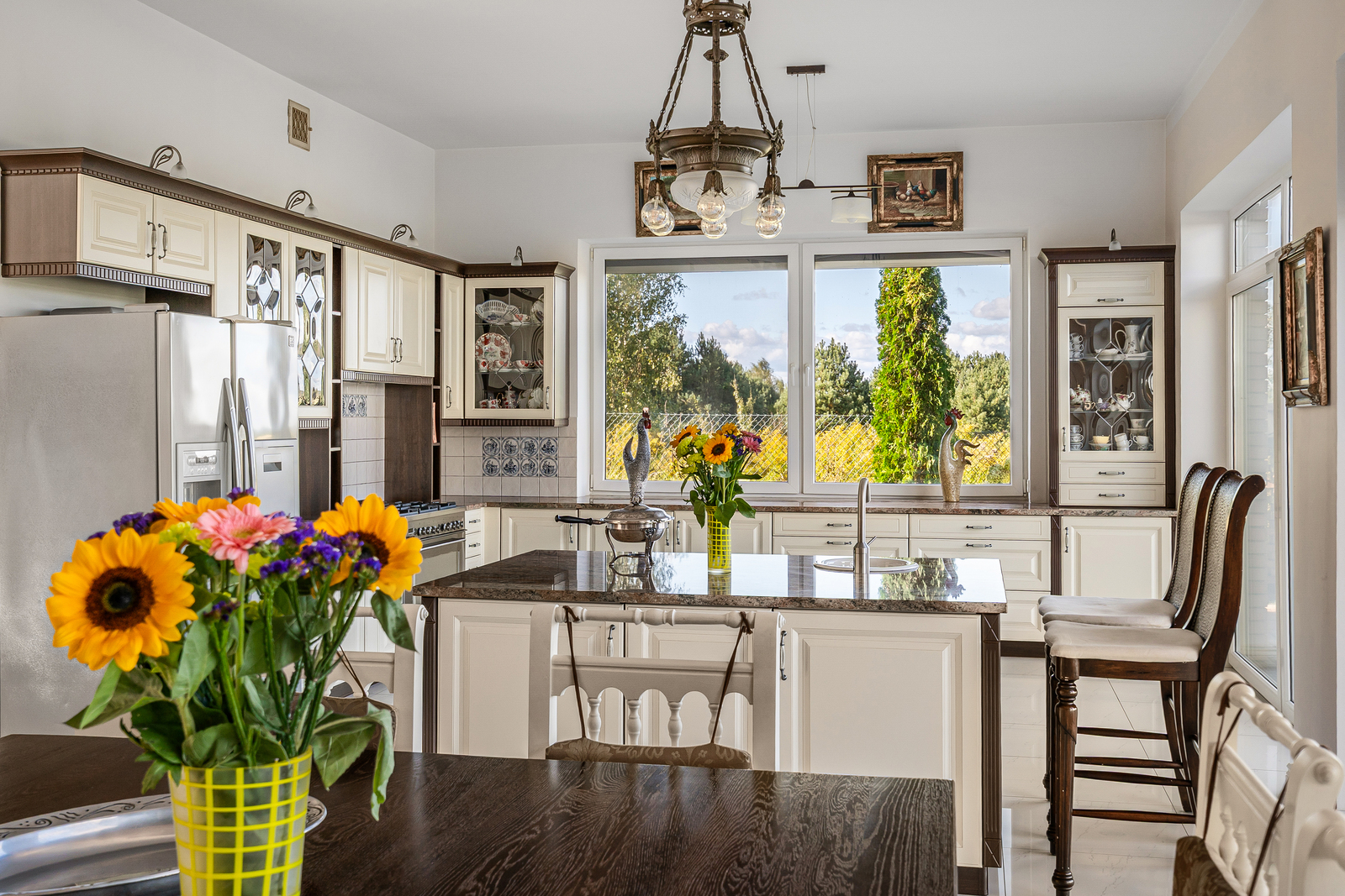 - duża kuchnia z jadalnią, z wyjściem na taras i otwarta na ogród,