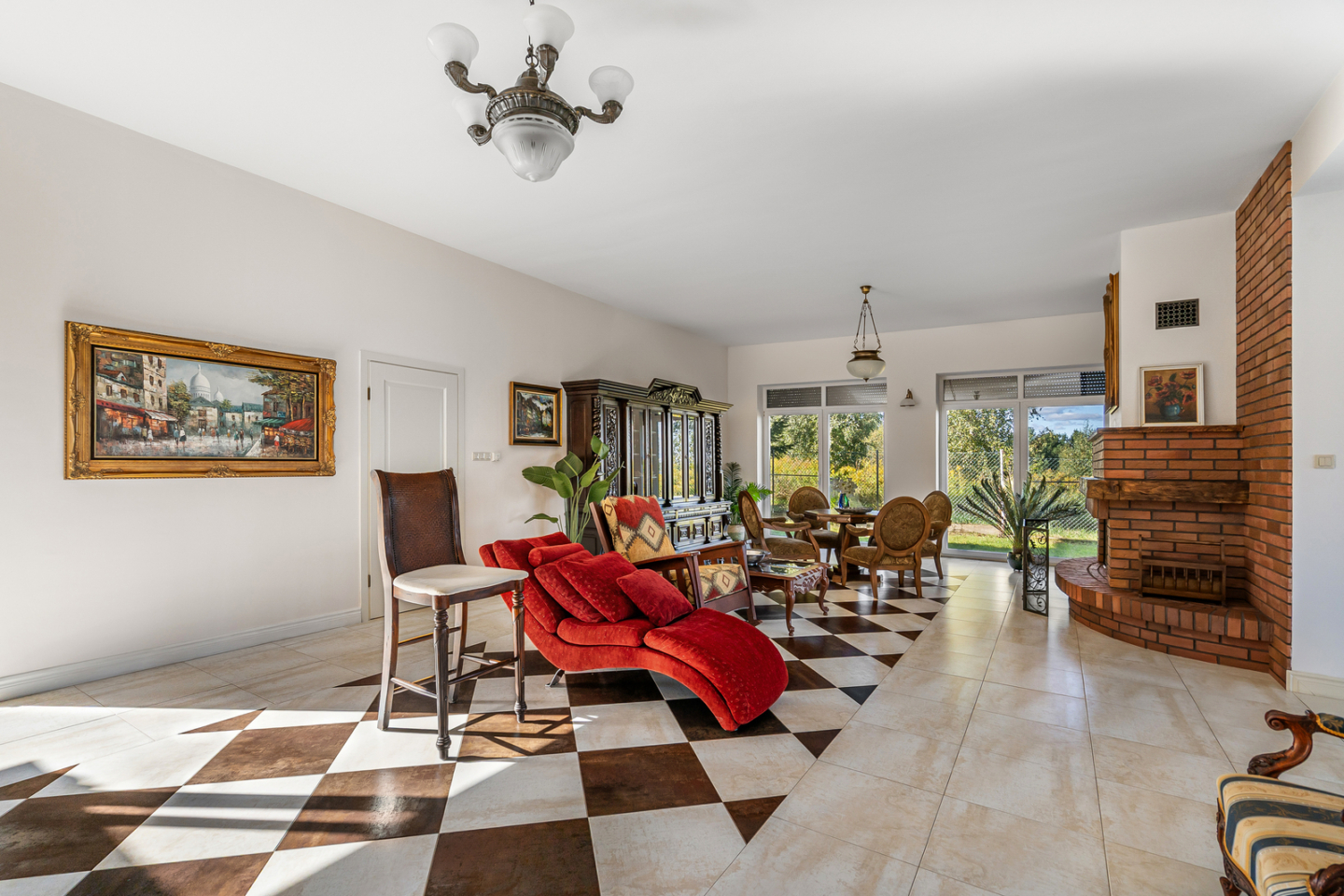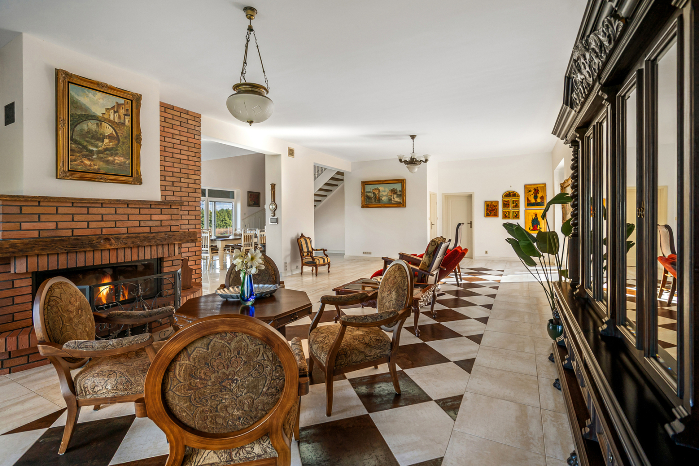 - przestronny salon z kominkiem,