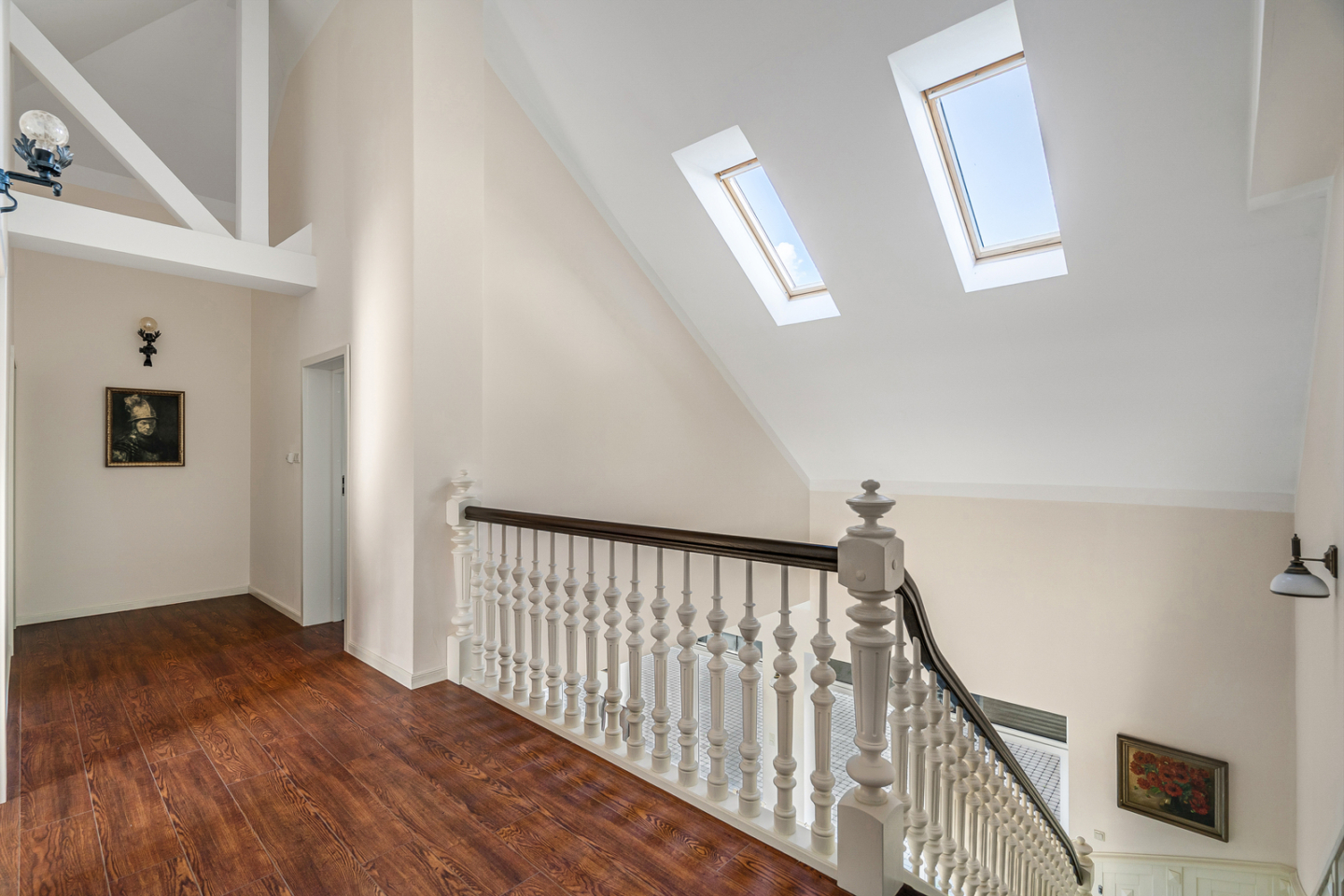 - piękne drewniane schody prowadzące na piętro.