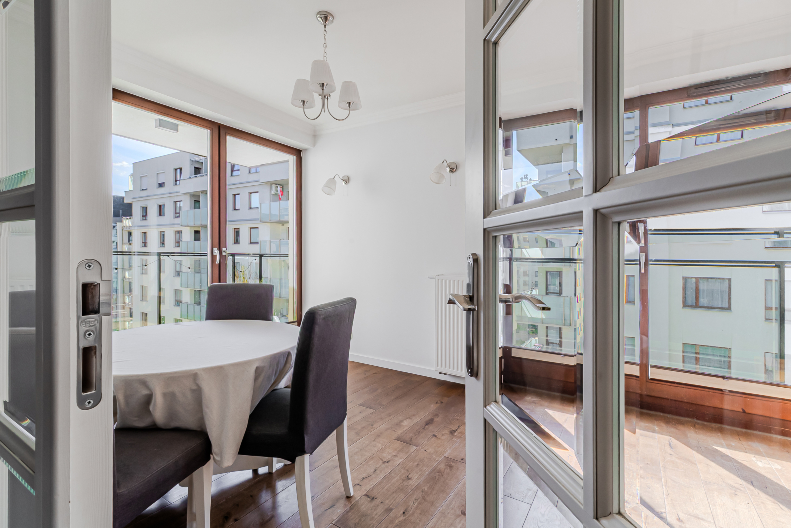 Ten stylowy apartament 3‑pokojowy na 5. piętrze przyciąga uwagę dużymi przeszkleniami, przez które zalewa go światło i zaprasza panoramę miasta w Twoje codzienne życie. Nieruchomość prezentowana jest w ramach wyłącznej umowy sprzedaży w naszej agencji.