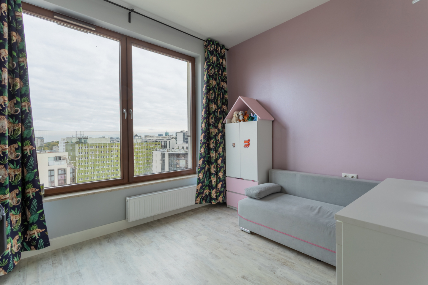 Apartament jest trzystronny – z ekspozycją okien na zachód, północ i wschód, co zapewnia doskonałe doświetlenie o każdej porze dnia. W jego skład wchodzą: